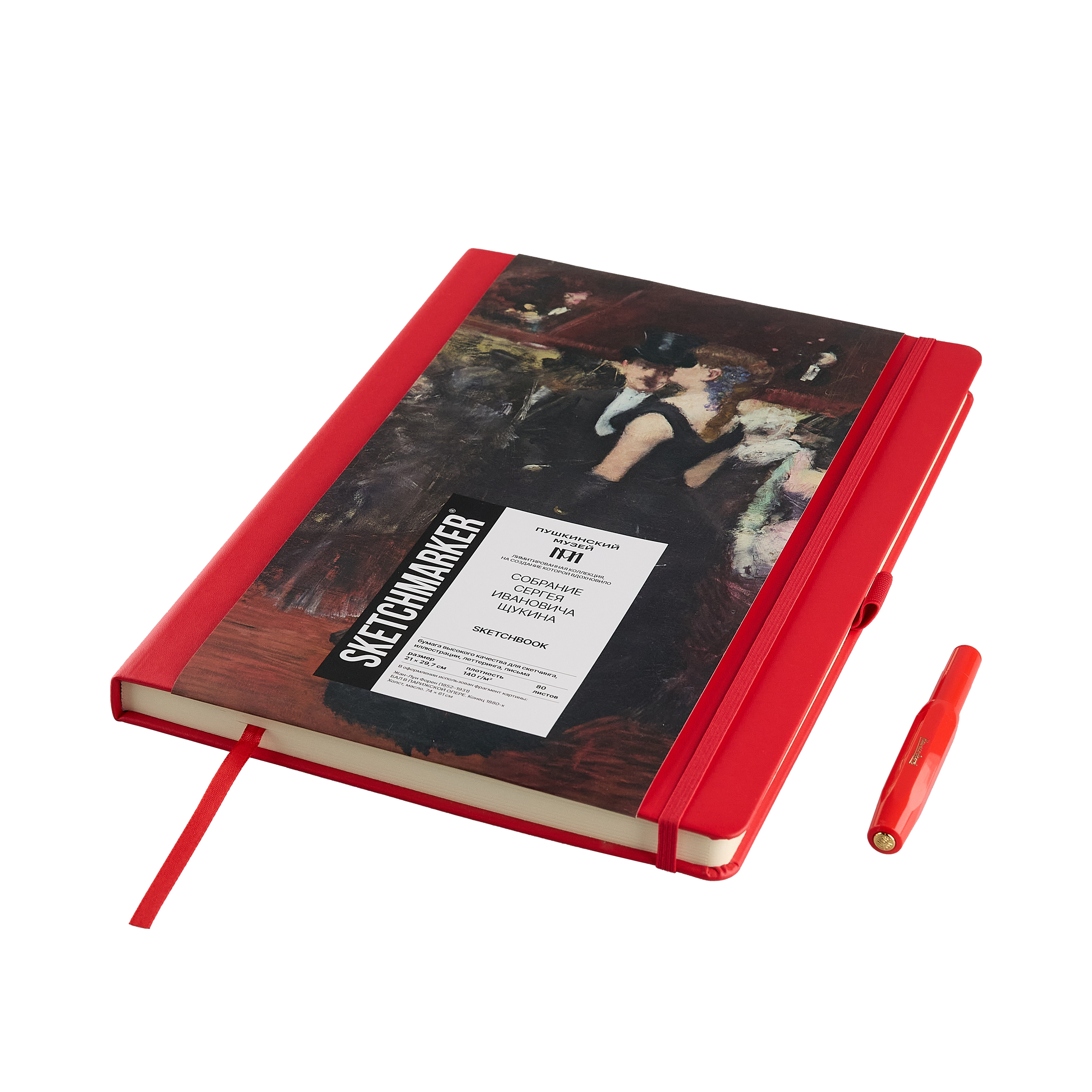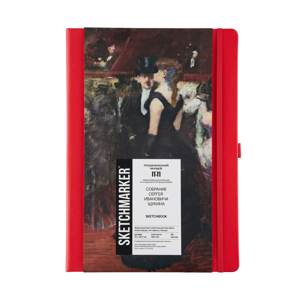 Скетчбуки для графики SKETCHMARKER & Pushkinskiy созданы в коллаборации с Пушкинским музеем, отлично подойдут для зарисовок и набросков, каллиграфии, леттеринга, иллюстрации, записей и заметок. Ими удобно будет пользоваться художникам, дизайнерам, иллюстраторам и авторам текстов. Внутри скетчбука в твердой обложке 80 листов бумаги теплого белого оттенка без линовки. Бумага гладкая, с едва ощутимой фактурой, плотностью 140 г/м?. Бумага произведена из 100% целлюлозы и хорошо выдерживает исправления. Отлично подойдет для работы карандашами, шариковыми и перьевыми ручками, линерами и роллерами. Возможно использование гуаши и акрила с минимальным количеством воды. При работе с маркерами и акварелью рекомендуется использовать подложку под рабочий лист во избежание протекания чернил и воды на следующую страницу. Скетчбук оснащён закладкой-ляссе, эластичной резинкой для фиксации в закрытом виде и держателем для пишущего инструмента ? все эти элементы выполнены в цвете обложки скетчбука.
