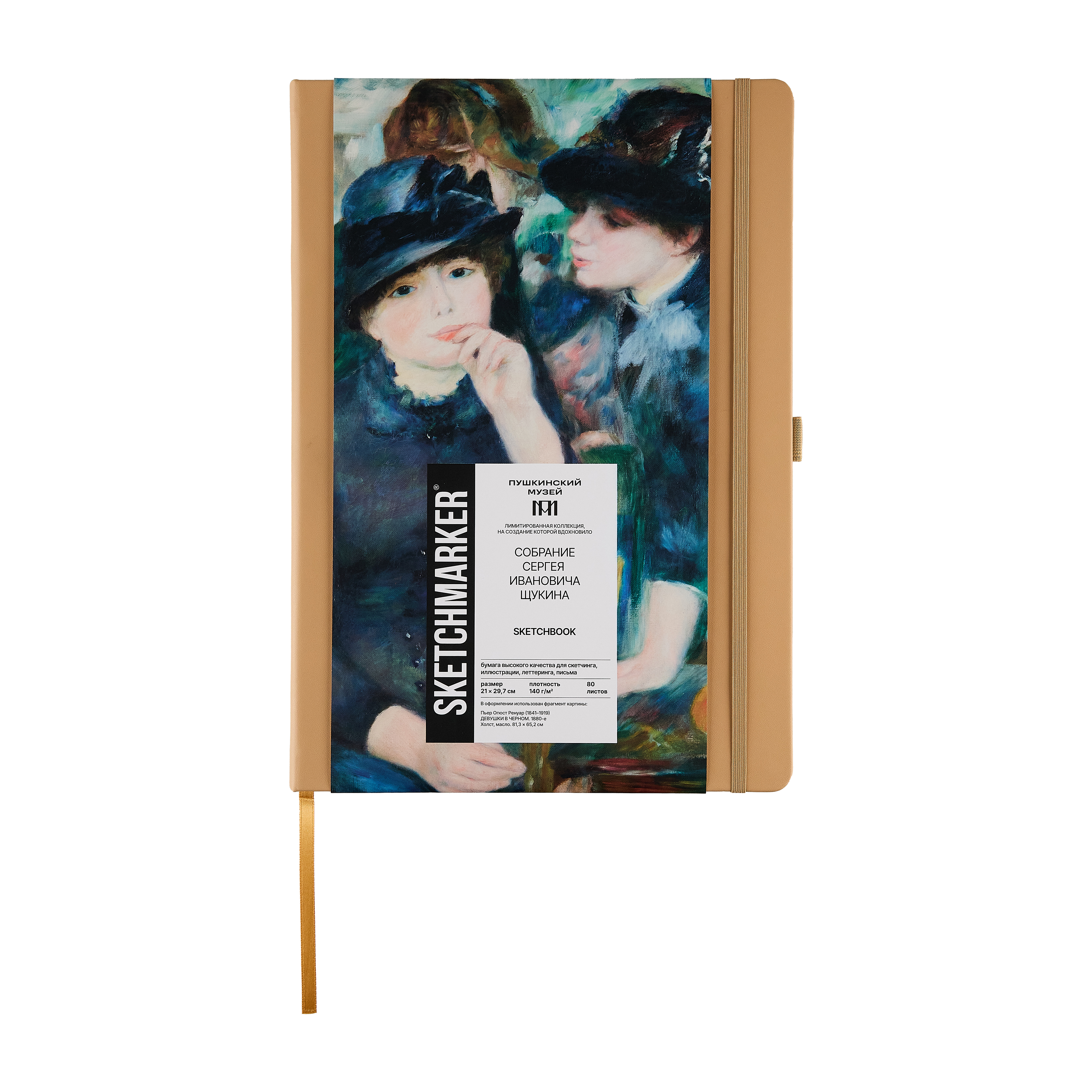 Скетчбуки для графики SKETCHMARKER & Pushkinskiy созданы в коллаборации с Пушкинским музеем, отлично подойдут для зарисовок и набросков, каллиграфии, леттеринга, иллюстрации, записей и заметок. Ими удобно будет пользоваться художникам, дизайнерам, иллюстраторам и авторам текстов. Внутри скетчбука в твердой обложке 80 листов бумаги теплого белого оттенка без линовки. Бумага гладкая, с едва ощутимой фактурой, плотностью 140 г/м?. Бумага произведена из 100% целлюлозы и хорошо выдерживает исправления. Отлично подойдет для работы карандашами, шариковыми и перьевыми ручками, линерами и роллерами. Возможно использование гуаши и акрила с минимальным количеством воды. При работе с маркерами и акварелью рекомендуется использовать подложку под рабочий лист во избежание протекания чернил и воды на следующую страницу. Скетчбук оснащён закладкой-ляссе, эластичной резинкой для фиксации в закрытом виде и держателем для пишущего инструмента ? все эти элементы выполнены в цвете обложки скетчбука.