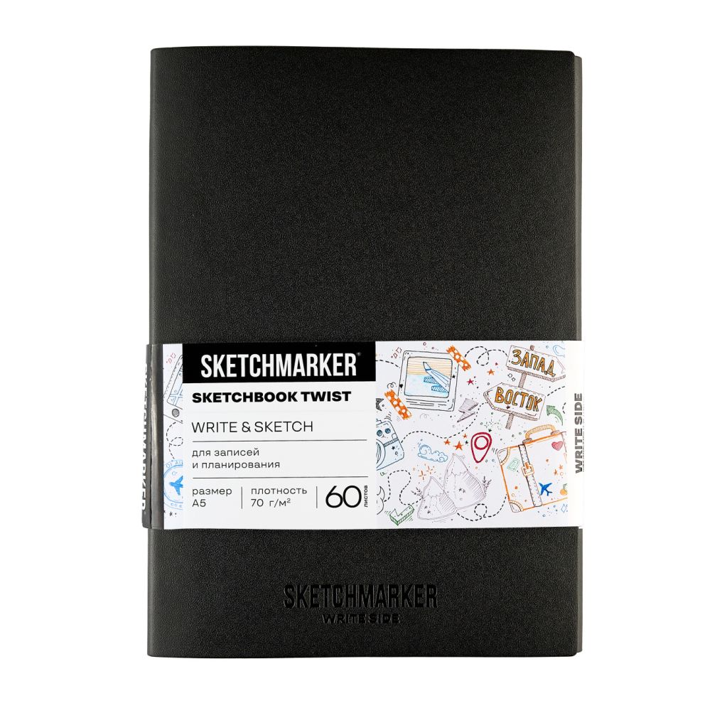 Скетчбук Sketchmarker Twist — это два вида бумаги для разных целей и художественных материалов. Переверните скетчбук и поменяйте пространство для творчества. В скетчбуке Sketch&Write 100 листов бумаги 140 г/м? для карандашей, ручек, сухих графических материалов - 40 листов белого цвета и 60 листов с линовкой в точку. Две закладки для удобной ориентации. Он удобен для быстрых зарисовок, заметок и скетчинга. Компактный скетчбук с гладкой бумагой, едва ощутимой фактурой обеспечивает плавное скольжение инструмента и минимальный износ пишущего узла. Прекрасен для любых художественных и письменных материалов и канцелярских принадлежностей. Актуален для рисования комиксов и аниме. Надежный переплет швейно-клееный, листы сшиты нитками и дополнительно закреплены полосками клея.