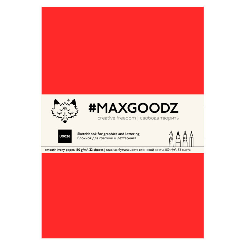 Обновленная линейка скетчбуков от Maxgoodz и школы каллиграфии и леттеринга U0026. В отличие от своих предшественников скетчбуки данной серии выпускаются с бумагой повышенной плотности 150 гр/м2, что позволяет работать на обеих сторонах листа. Большой блокнот формата B5 (18х27 см.) с плотной бумагой лучше всего подойдет для истинных профи. Скетчинг и разработка собственных идей или проектов в этих блокнотах станет для вас лёгким и непринужденным процессом, ведь все материалы будут у вас под рукой, собраны в одном месте. Гладкая итальянская бумага цвета слоновой кости, тонированная в массе, и прочный переплёт на нитке делают скетчбук идеальной основой для графических работ, каллиграфии и леттеринга.
