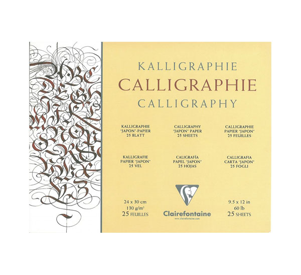 Альбом для каллиграфии «Calligraphy» («Калл?графи») производится французской компанией «CLAIREFONTAINE» («Клэрфонтэн»). Она прошла путь от маленького семейного производства до одного из крупнейших изготовителей бумажной продукции. Сегодня «CLAIREFONTAINE» выпускает более 150 видов бумаги, которая пользуется популярностью у студентов, дизайнеров и профессиональных художников. Альбом для каллиграфии «Calligraphy» изготавливается без кислот и оптических отбеливателей, что делает бумагу устойчивой к процессам старения. Специальная гладкая бумага для каллиграфии впитывает тушь и не дает ей растрескиваться. Бумага альбома, цвета слоновой кости, подойдёт для любых техник каллиграфии. Альбом для каллиграфии «Calligraphy» выпускается с бумагой плотностью 130 г/кв.м и бывает двух размеров 24*30 и 30*40 сантиметров.