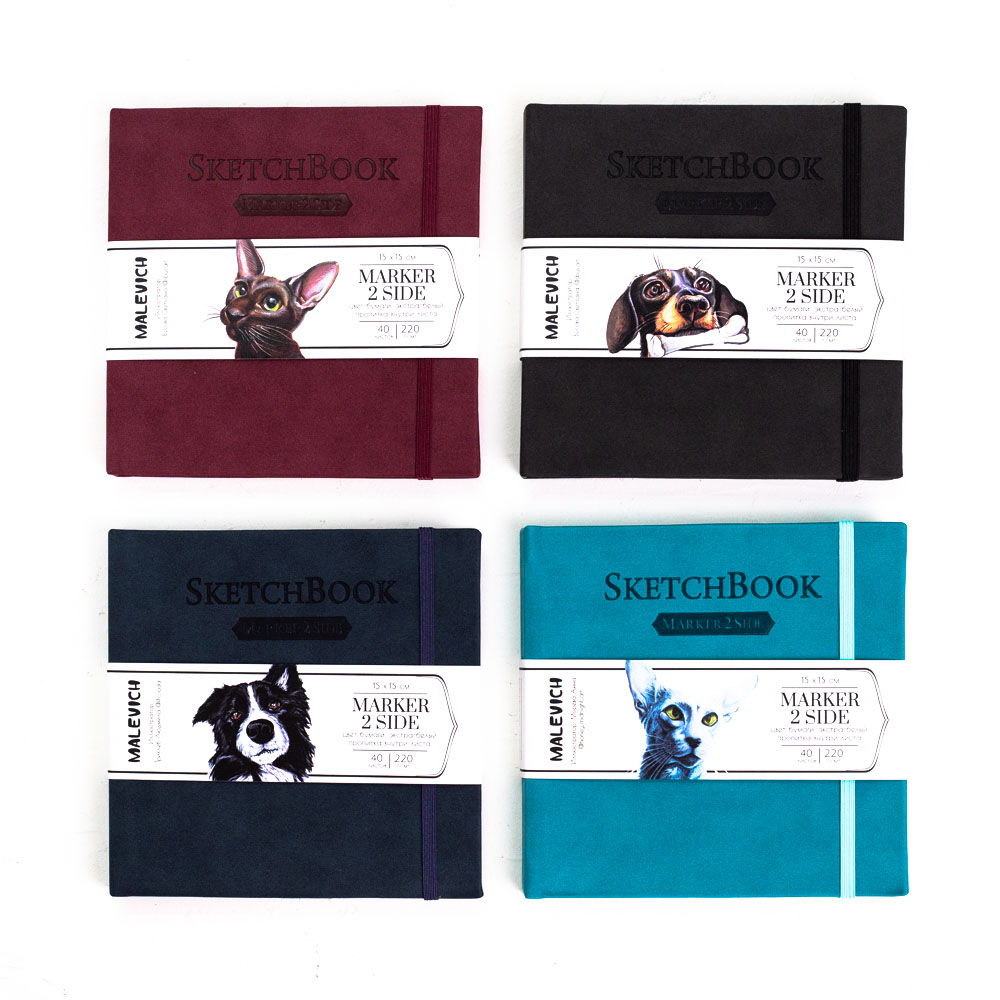 Cкетчбук с двусторонней маркерной бумагой с плотностью 220 гр/м2. Рисовать можно с обеих сторон, ни капли чернил не попадет на следующий лист. Можно рисовать в реалистичной манере с максимально большим количеством слоев. Всего в скетчбуке 40 листов — это целых 80 страниц, которые можно заполнить красивыми иллюстрациями. Формат 15х15 см. в книжном переплете с застежкой-резинкой. Обложка на ощупь напоминает мягкий бархатистый нубук. Амбалажная лента съемная, без неё скетчбук выглядит лаконично и стильно. Серия представлена скетчбуками в обложках разных цветов.