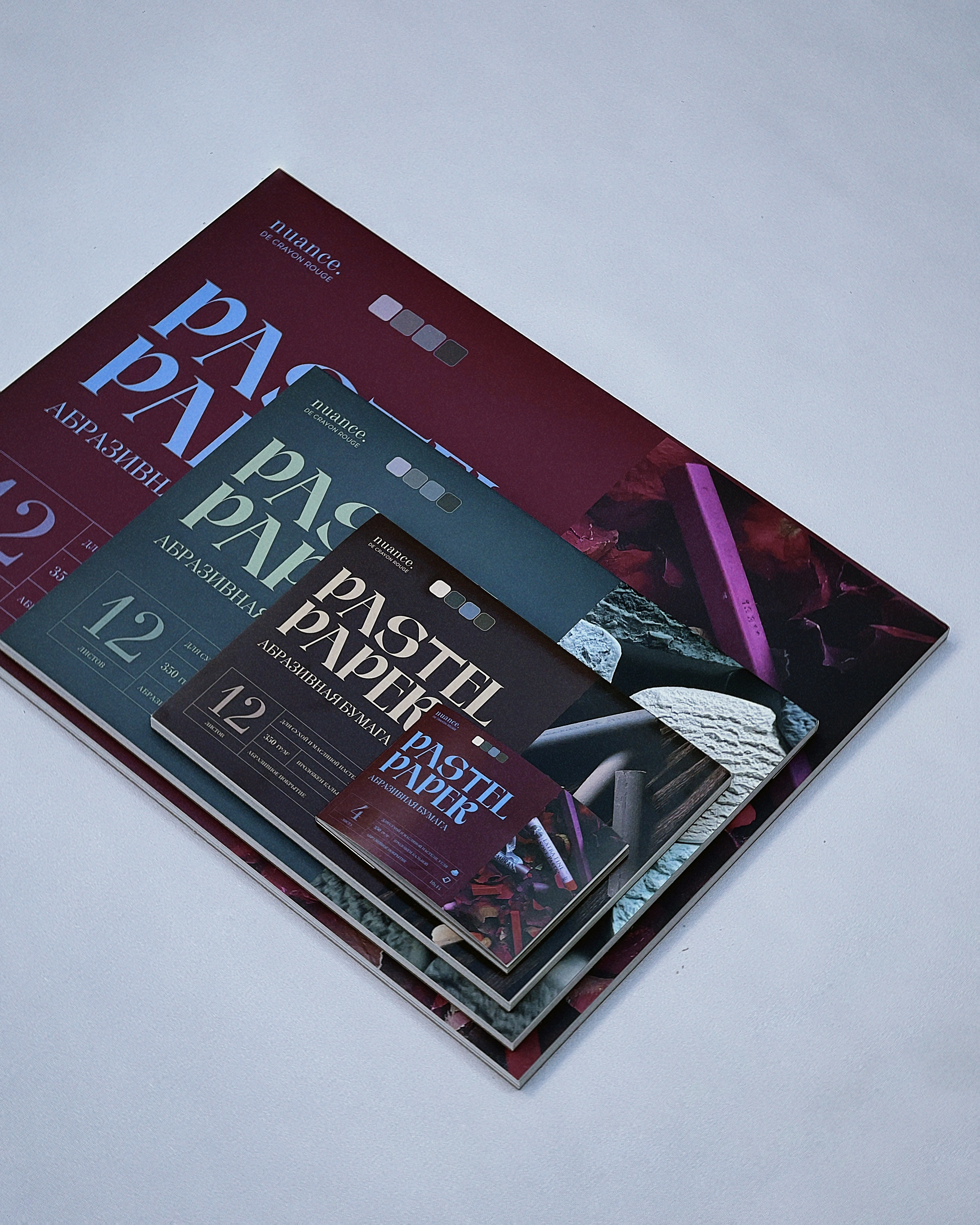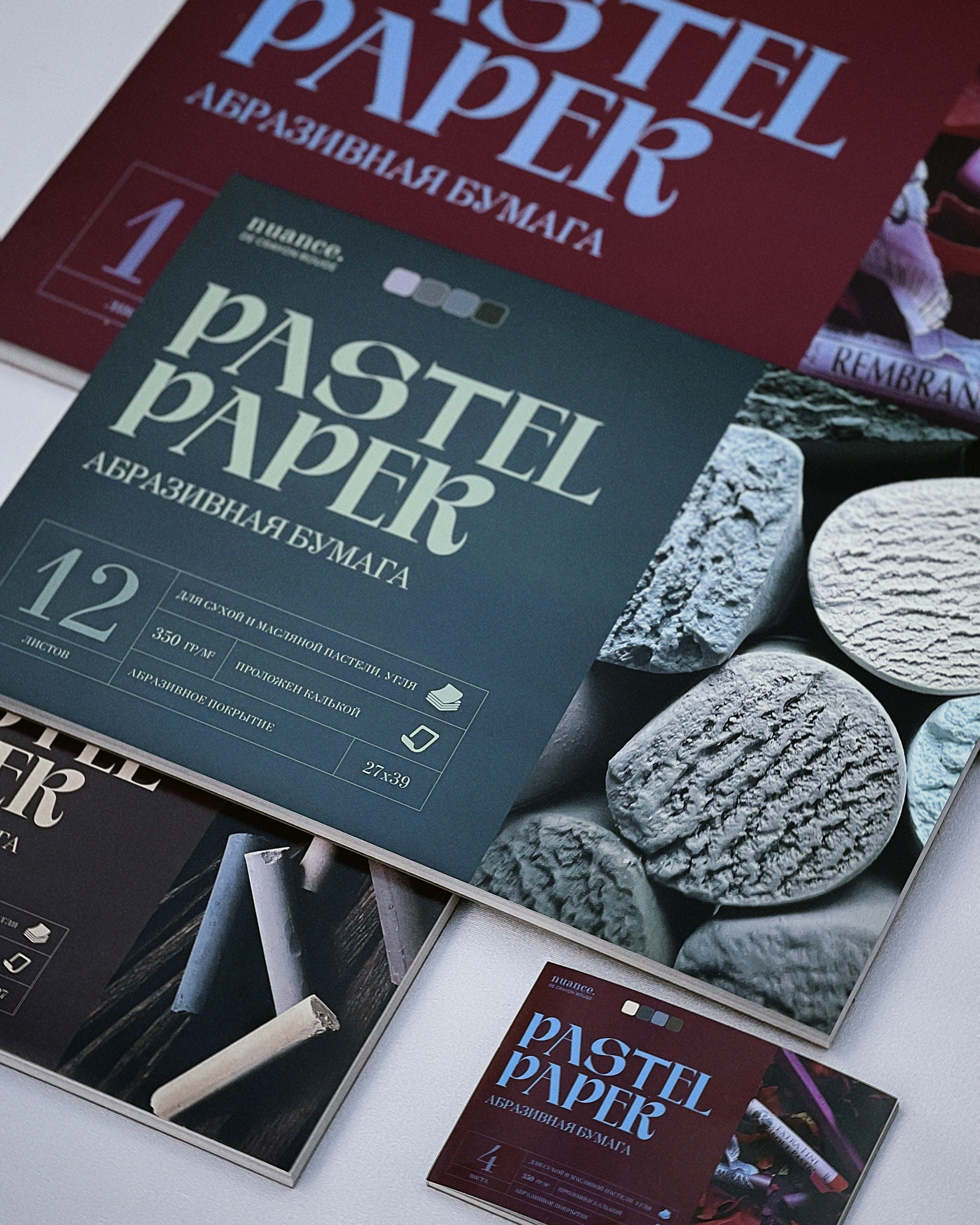 Абразивная бумага nuance. идеальна для сухой и масляной пастели, угля и сангины. За счёт специального напыления, она захватывает и удерживает пигмент, позволяя создавать драматичные и насыщенные работы. Мы постарались создать бумагу, которая не царапает пальцы при работе, при этом она достаточно абразивна, чтобы захватывать частички пастели. Итогом работы стал комфортный, деликатный слой напыления, который точно оценят профессиональные пастелисты. В серии представлены альбомы четырёх форматов: 10х14, 19х27, 27х39, 39х54. Количество листов в альбомах: от 4 до 12. Внутри склеек листы в оттенках: Дюна, Олива, Сандал, Туман. Размер абразивных частиц 500 грит, это наилучшее значение для комфортной работы пастелью.