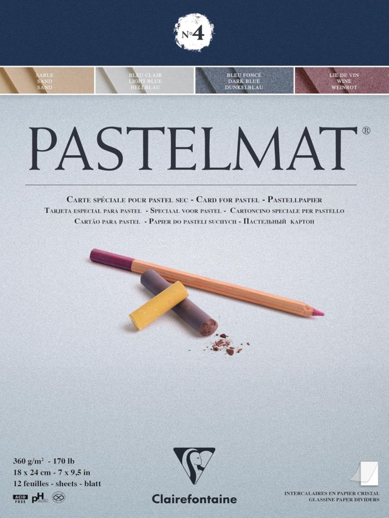 Блокнот для пастели «Pastelmat» изготовлен из качественной бумаги с высоким содержанием хлопка (40%). При производстве не использованы кислоты и оптические отбеливатели. Бумага устойчива к воздействию света. Она обладает уникальной бархатной поверхностью, которая отлично подойдёт даже для многослойной живописи. Шероховатая бархатная фактура хорошо держит частички пастели и уменьшает потребность в фиксативе. Блокнот для пастели «Pastelmat» содержит листы разного цвета, плотность которых составляет 360 г/кв.м. Цвета бумаги в альбомах: CL-96017 — кукуруза, лютик, темно-серый, светло-серый. CL-96111 — темно-синий, светло-синий, бордовый, песочный. CL-96007 — белый, охра, коричневый, антрацит. CL-96008 — белый, охра, коричневый, антрацит. CL-96018 — кукуруза, лютик, темно-серый, светло-серый. Блокнот для пастели «Pastelmat» («Пастельм?т») производится французской компанией «CLAIREFONTAINE» («Клэрфонтэн»). Компания прошла путь от маленького семейного производства до одного из крупнейших производителей бумажной продукции. Сегодня «CLAIREFONTAINE» выпускает более 150 видов бумаги, которая пользуется популярностью у студентов, дизайнеров и профессиональных художников.