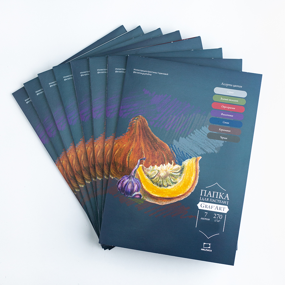 Пастельная бумага «Малевичъ» выполнена из 100% альфа целлюлозы, плотность бумаги 270 гр/м2. Листы бумаги окрашены в массе, позволяют подобрать наиболее удачный фон и добавить глубины вашим произведениям. Бумага двусторонняя, с одной стороны мелкозернистая поверхность отлично держит пигмент и подходит для различных видов графических материалов, с другой — гладкая, подойдет для рисования карандашами, гелевыми ручками и другими инструментами для графики. Серия представлена листами формата А3 и А4 разных цветов поштучно или в папках по 7 листов.