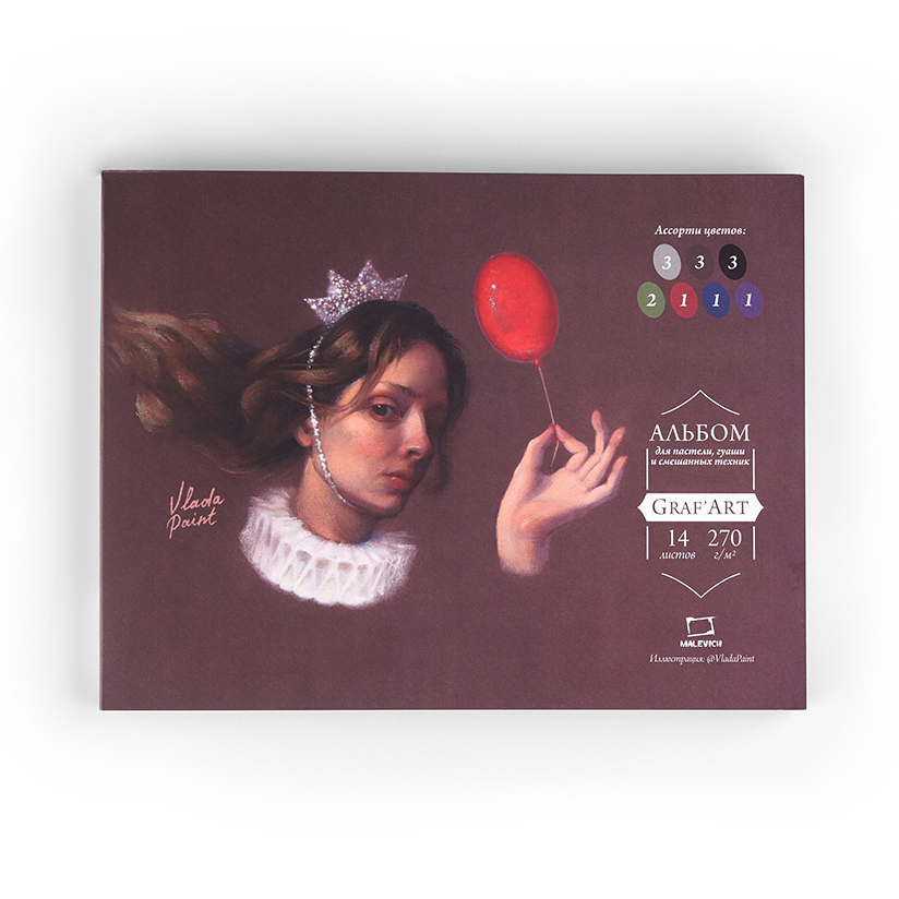 Удобный скетчбук для работы пастелью и сухими графическими материалами «Малевичъ» GrafArt. Внутри скетчбука 24 листа тонированной бумаги разных цветов плотностью 270 гр/м2. Фактура бумаги естественная, не ярко выраженная, позволяет наносить несколько слоев пастели. На бумаге прекрасно работает растушевка, тушевать можно и пальцами, каждый разворот проложен калькой, что обеспечивает сохранность работ на каждой странице. Обложка выполнена из плотного картона, крепление скетчбука на скрепке.