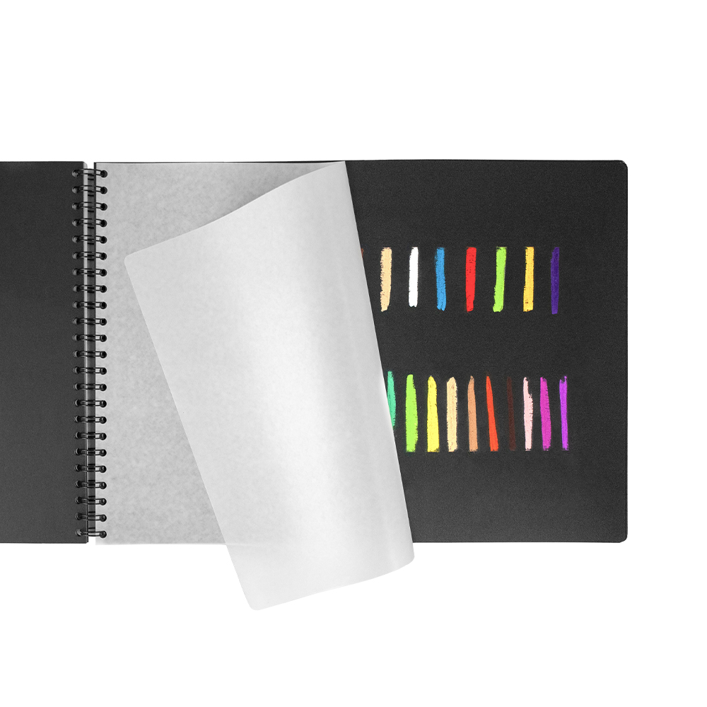 Удобный скетчбук для работы пастелью и сухими графическими материалами «Малевичъ» GrafArt. Внутри скетчбука 20 листов тонированной бумаги черного цвета плотностью 270 гр/м2. Ярко выраженная фактура бумаги идеально подходит для работы пастелью, каждый разворот проложен калькой, что обеспечивает сохранность работ на каждой странице. Обложка выполнена из плотного картона, крепление скетчбука на спирали.