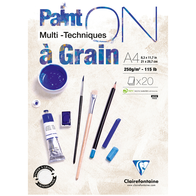 Альбом Clairefontaine для смешанных техник на склейке Paint'ON – одна из лучших линеек от французского производителя Clairefontaine. Качество и плотность 250гр/м2 делают бумагу устойчивой к исправлениям, позволяют наносить материал в несколько слоев. Одна сторона гладкая – предназначена для точных рисунков. Другая сторона листа имеет легкую зернистую текстуру, что придает рисунку характер. Подходит для работы карандашом, углем, пастелью, фломастерами, маркерами, тушью и гуашью. Вид крепления – склейка, позволяет легко отделить лист с готовым рисунком. Выпускается французской компанией CLAIREFONTAINE. Компания прошла путь от маленького семейного производства до одного из крупнейших изготовителей бумажной продукции. Сегодня CLAIREFONTAINE выпускает более 150 видов бумаги, которая пользуется популярностью у студентов, дизайнеров и профессиональных художников.