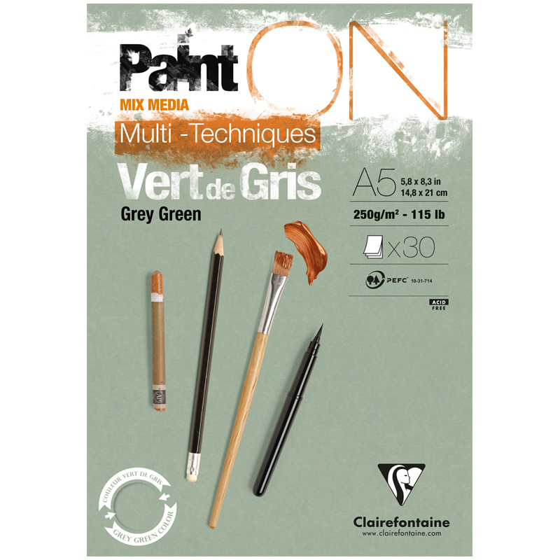 Альбом Clairefontaine для смешанных техник на склейке PaintON – одна из лучших линеек от французского производителя Clairefontaine. Качество и плотность 250гр/м2 делают бумагу устойчивой к исправлениям, позволяют наносить материал в несколько слоев. Серо-зеленый оттенок и мелкое зерно придают контрастность и глубину рисунку. Легкое зерно позволяет использовать разные инструменты для работы. Подходит для работы карандашом, углем, пастелью, фломастерами, маркерами, тушью и гуашью. Вид крепления – склейка, позволяет легко отделить лист с готовым рисунком. Выпускается французской компанией CLAIREFONTAINE. Компания прошла путь от маленького семейного производства до одного из крупнейших изготовителей бумажной продукции. Сегодня CLAIREFONTAINE выпускает более 150 видов бумаги, которая пользуется популярностью у студентов, дизайнеров и профессиональных художников.