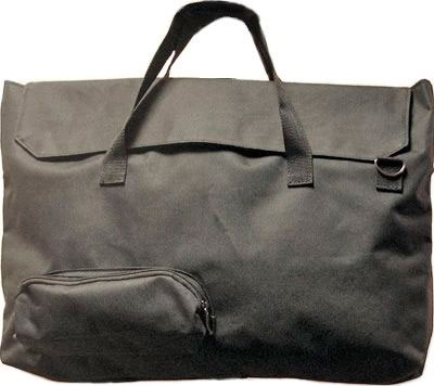 Чехол для подрамника формата А3. Размер: 500х350х45 мм. Горизонтальный, мягкой конструкции. Цвет: черный. Закрывается настрочным клапаном на ленту "велькро". На передней стенке в левом углу объемный карман на молнии. Чехол оснащен двумя ручками и регулируемым ремнем для переноски. Предназначен для переноски и хранения подрамников и легких планшетов.