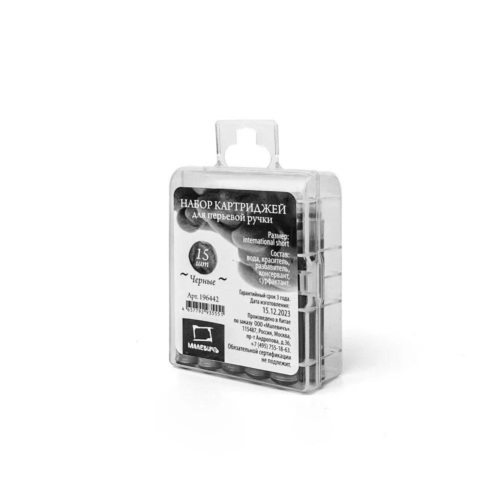 Набор чернильных картриджей для перьевой ручки «Малевичъ» стандарта international short с черными чернилами. Картридж с чернилами экономит время при перезаправки ручки, прост в использовании и позволяет рукам и окружающим предметам оставаться чистыми во время замены. Просто раскрутите ручку, извлеките пустой картридж и поставьте на его места новый до характерного щелчка. Картриджи стандарта international short подходят к большинству типов современных перьевых ручек.