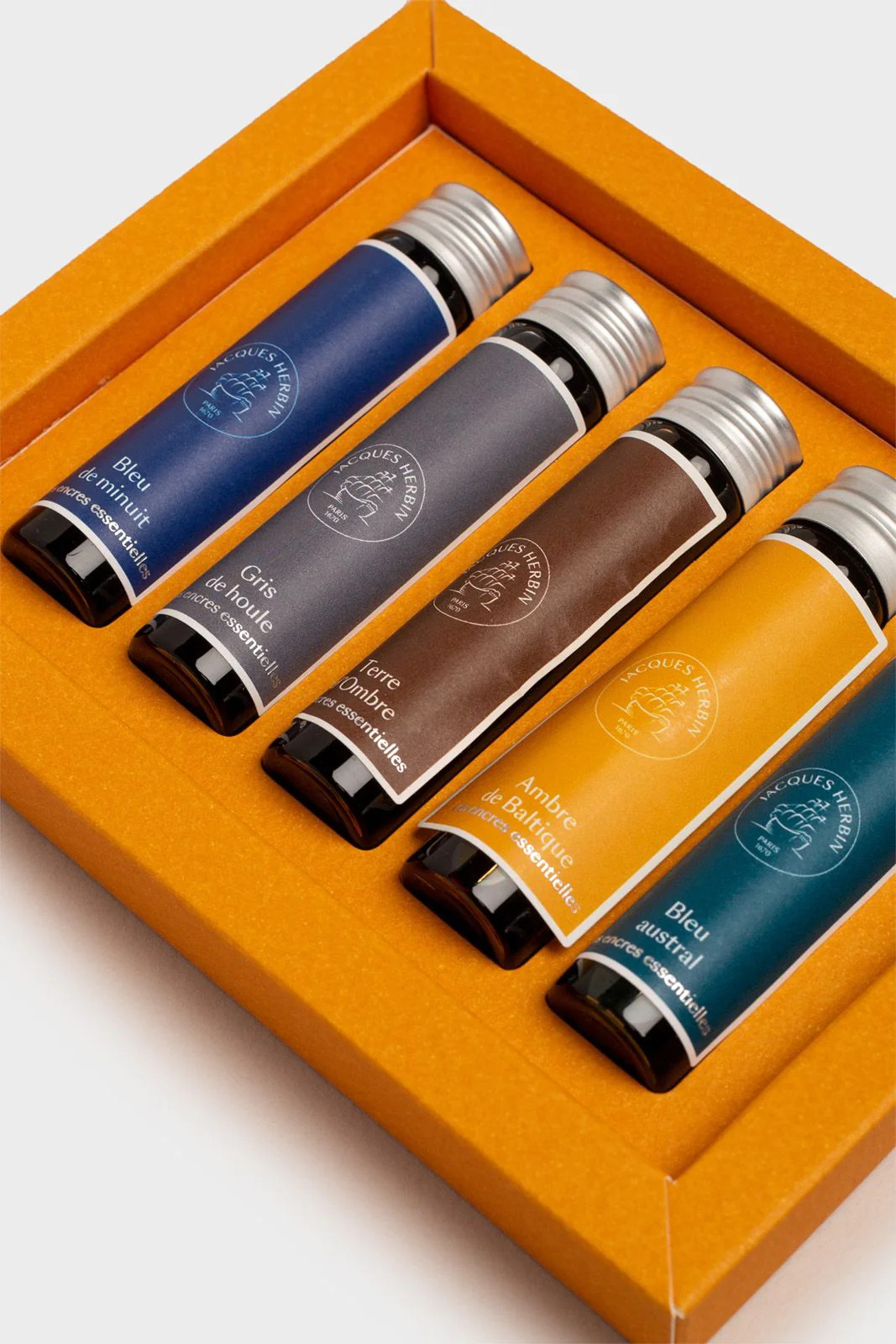 Чернила серии Essential Ink от Herbin созданы для самых требовательных пользователей перьевых ручек. Чернила этой серии созданы на основе натуральных красителей, благодаря чему обладают яркими глубокими и живыми цветами. Чернила не предназначены для смешивания с другими цветами. Эксклюзивная линейка чернил представлена в наборе из пяти флаконов по 15 мл.