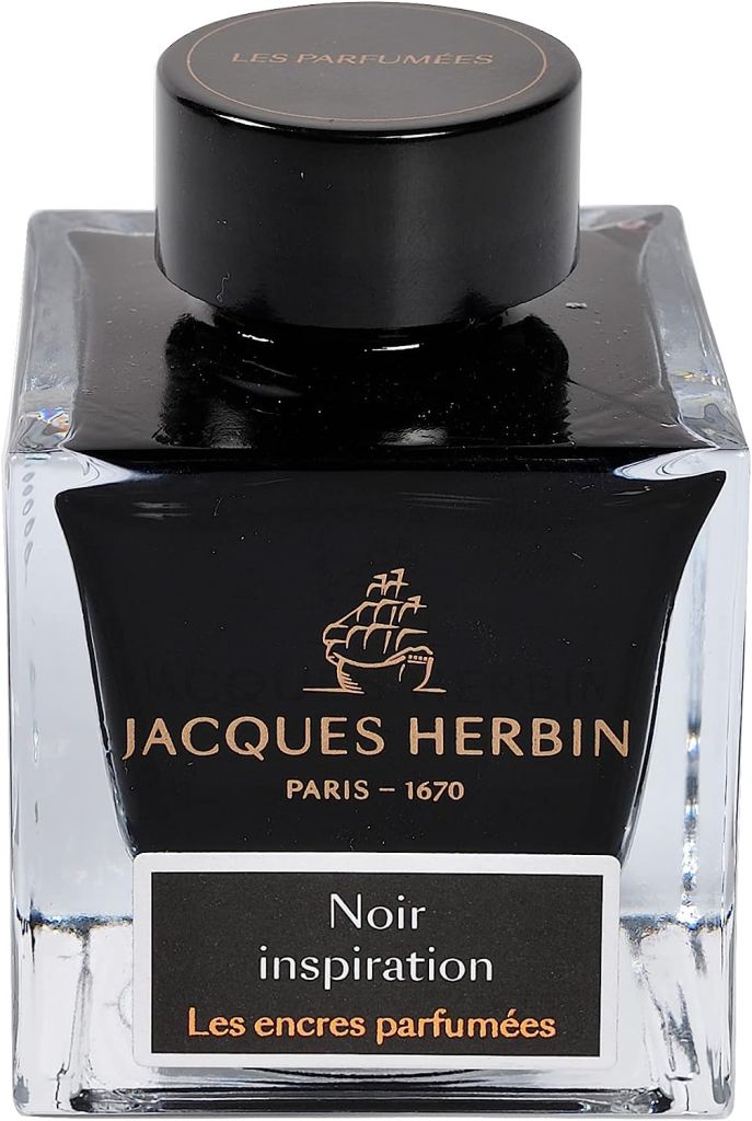 Эти изысканно-романтические чернила идеально подходят для перьевых ручек, поскольку они имеют натуральный аромат и не содержат пигментов. Ароматические чернила Herbin изготавливаются из цветочной воды (гидролата) розы, апельсина, лаванды, яблока и фиалки. Гидролаты, используемые Herbin, поступают из Грасса, Франция, прованского города, давно связанного с парфюмерной промышленностью и известного своими цветочными ароматами. Каждый цвет соответствует определённому аромату. Цвет Ambre Insouciance ведёт нас своим обонятельным шлейфом заката, ароматами нежной липы с оттенком кардамона. Цвет Jacques Herbin Brun prevenance — теплый землистый коричневый цвет с ароматом копчёного медового чая, дополненного нероли и ветивером. Цвет Noir inspiration — — глубокий и тёмный чёрный цвет, напоминающий запахи табака, мха и ветивера.