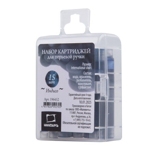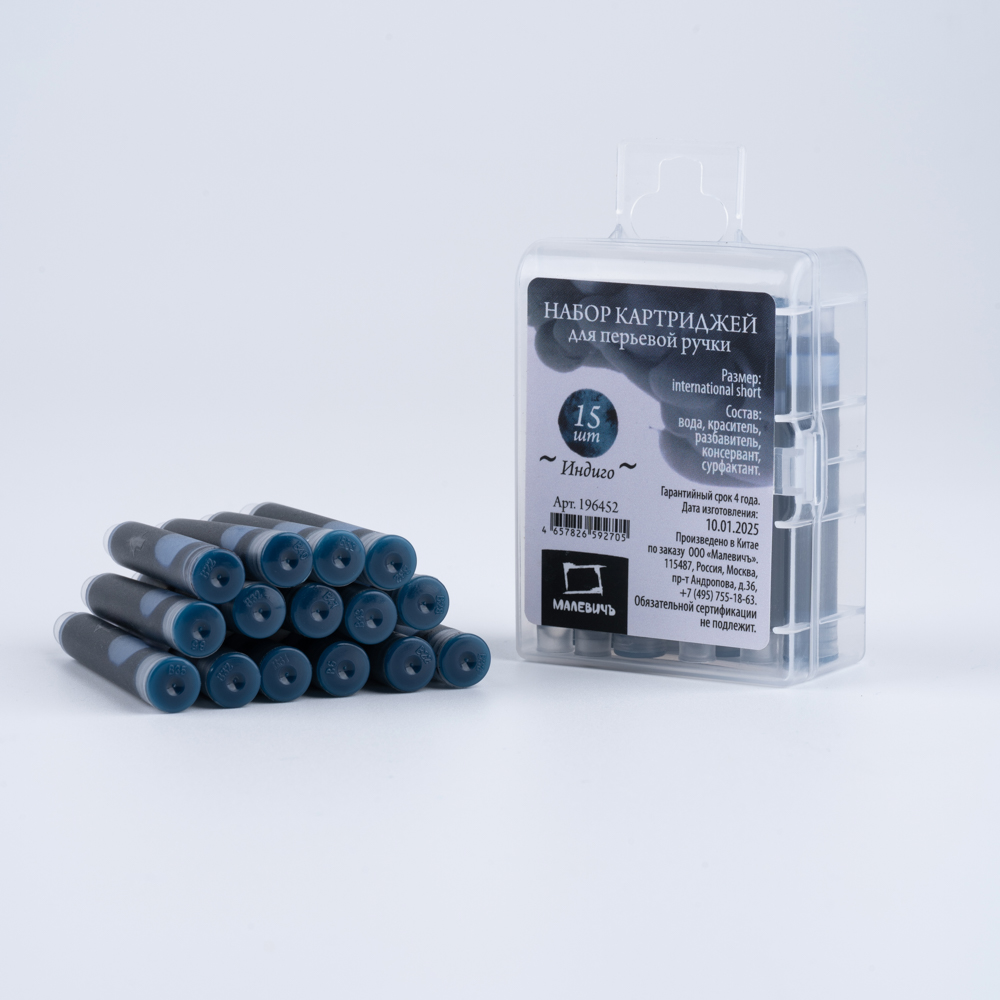Набор чернильных картриджей для перьевой ручки «Малевичъ» стандарта international short с черными чернилами. Картридж с чернилами экономит время при перезаправки ручки, прост в использовании и позволяет рукам и окружающим предметам оставаться чистыми во время замены. Просто раскрутите ручку, извлеките пустой картридж и поставьте на его места новый до характерного щелчка. Картриджи стандарта international short подходят к большинству типов современных перьевых ручек.