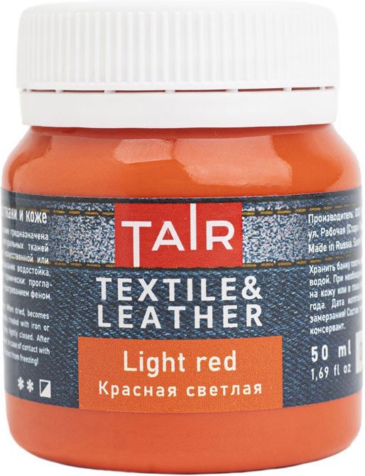 Акриловые краски, предназначенные для украшения натуральных тканей, таких как хлопок или лён, а также изделий из натуральной или искусственной кожи. Акриловые краски для росписи ткани и кожи прекрасно подходят для создания фрагментарных рисунков. Отлично держатся на поверхности кожи и текстиля, позволяют создавать уникальные изображения благодаря разнообразной цветовой палитре. Удобны в применении. Не используются для полного окрашивания тканей. Консистенция: густая, кремообразная. Укрывистость: в зависимости от пигмента. Состав: акриловая дисперсия, пигменты, наполнитель, загуститель, консерванты, вода. Свойства: ·Создают гибкое покрытие; ·Разбавляется водой, акриловым лаком, разбавителем акриловых красок по ткани и т.п.; ·После высыхания приобретает водостойкость; ·Высокий уровень светостойкости (в зависимости от пигмента); ·Смешиваются между собой в любых соотношениях; ·Время высыхания в течение одного часа; ·Мягкая однородная консистенция. Способ применения: Предварительно очистить и обезжирить основу. Некоторые пропитки, которые наносятся на кожу и кожзаменители могут мешать сцеплению краски с поверхностью. Ткань лучше предварительно прогладить. Краска наносится кисть, валиком или поролоновым спонжем. Предпочтительно наносить несколько тонких, полупрозрачных слоев, чем один толстый. Красочный слой приобретёт особую прочность только после воздействия температуры. После завершения работы необходимо выждать 12-15 часов, после — закрепить рисунок, проглаживая горячим утюгом с изнаночной стороны в течение 2-3 минут или обработав его потоком горячего воздуха из бытового фена. Однако на тканях из натуральных волокон краска будет прочно держаться и без закрепления. Стоит помнить, что данные краски не предназначены для полного окрашивания ткани, а только для нанесения фрагментарных изображений. Подходящие поверхности: Изделия из кожи, кожзама, натуральных и некоторых искусственных тканей. Будьте внимательны, некоторые изделия из искусственной кожи бывают обработаны на производстве составами, входящими в конфликт с красками по ткани и коже (плохая сцепляемость, липкий финиш после высыхания). Рекомендуется предварительная проверка совместимости на небольшом участке. Расход: 100 мл на 1-1,5 м2 в зависимости от толщины слоя. Хранение: рекомендуется хранение при температуре +2°C ? +36°C.