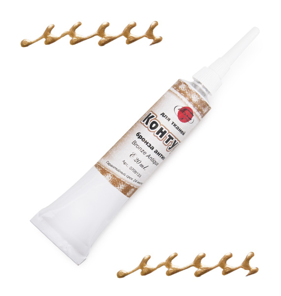 Контур акриловый по ткани ТАИР используется для нанесения контура рисунка, надписей, завершающих штрихов. Контуры ТАИР по ткани, в отличие от контуров ТАИР по стеклу, более мягкие, лучше проникают в структуру волокон и отлично держатся на ткани. Большой выбор цветов. Меняя силу нажима и скорость движения, можно подобрать нужную толщину линии. Высыхает в течение 24 часов. Цвет: металлик. Объем: 20 мл.