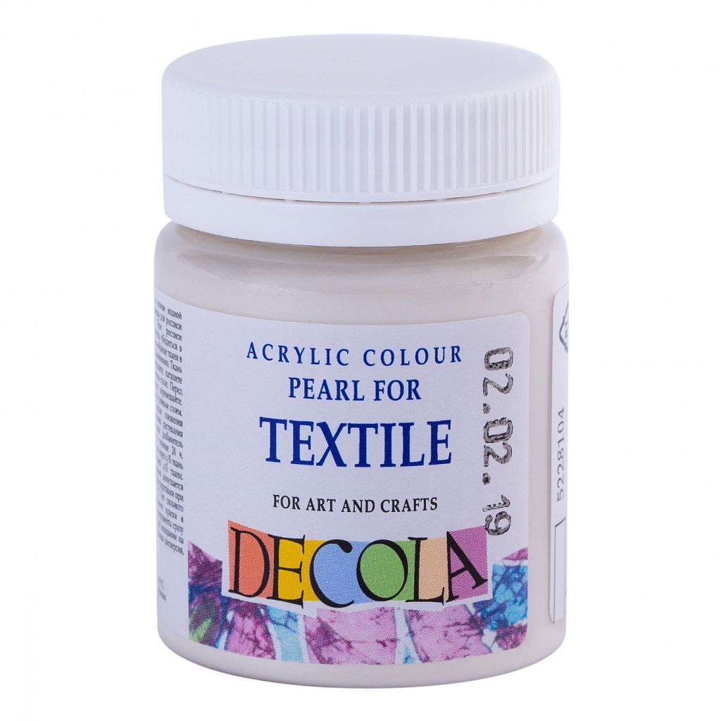 Акрил по ткани «Decola» («Дек?ла») производится заводом художественных красок Невская палитра, расположенным в городе Санкт-Петербурге. Завод уже более 80 лет выпускает продукцию для профессиональных художников и любителей творчества. Акрил по ткани «Декола» предназначен для росписи хлопчатобумажных, шелковых и синтетических тканей. Краска наносится непосредственно на ткань кистью, штемпелем или через трафарет. Готовый рисунок закрепляется горячим утюгом с внутренней стороны. Краска светостойкая, быстро сохнет и не линяет. Для разбавления акрила и получения акварельного эффекта необходимо использовать разбавитель для акриловых красок по ткани «Decola». Акрил по ткани «Декола» представлен широкой палитрой, в которой, помимо основных цветов, есть флуоресцентные, перламутровые и цвета металлики. Все цвета выпускаются в баночках по 50 миллилитров и в различных наборах.