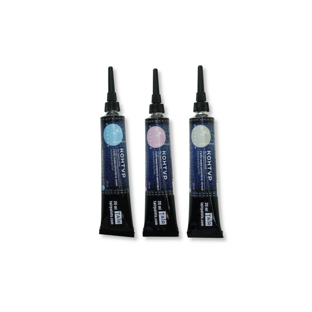 Контуры с блестками — это яркие золотые, серебряные или радужные блестки, замешанные в основу из прозрачного или тонированного акрилового геля и расфасованные в тубу с острым наконечником. Предназначены для создания контурных и точечных рисунков на ткани и коже. Также могут применяться и на других поверхностях, таких как дерево, бумага, пластик и т.д. Обладают высокой рельефностью и хорошо держат форму. Контуры проникают в структуру волокон, благодаря чему обладают высокой адгезией, после высыхания не смываются водой. Акриловые контуры «ТАИР» обладают густой консистенцией и отлично зарекомендовали себя в технике популярной точечной росписи и имитации вышивки. Кроме того, они используются для подрисовок тонких линий, узоров и рисования надписей в миксмедийных и скрапбукинговых техниках. В декупаже контуры часто применяются для того, чтобы скрыть границу приклеенного рисунка или для подрисовки отдельных элементов. Состав: акриловая дисперсия, пигменты, наполнитель, загуститель, консерванты, вода.