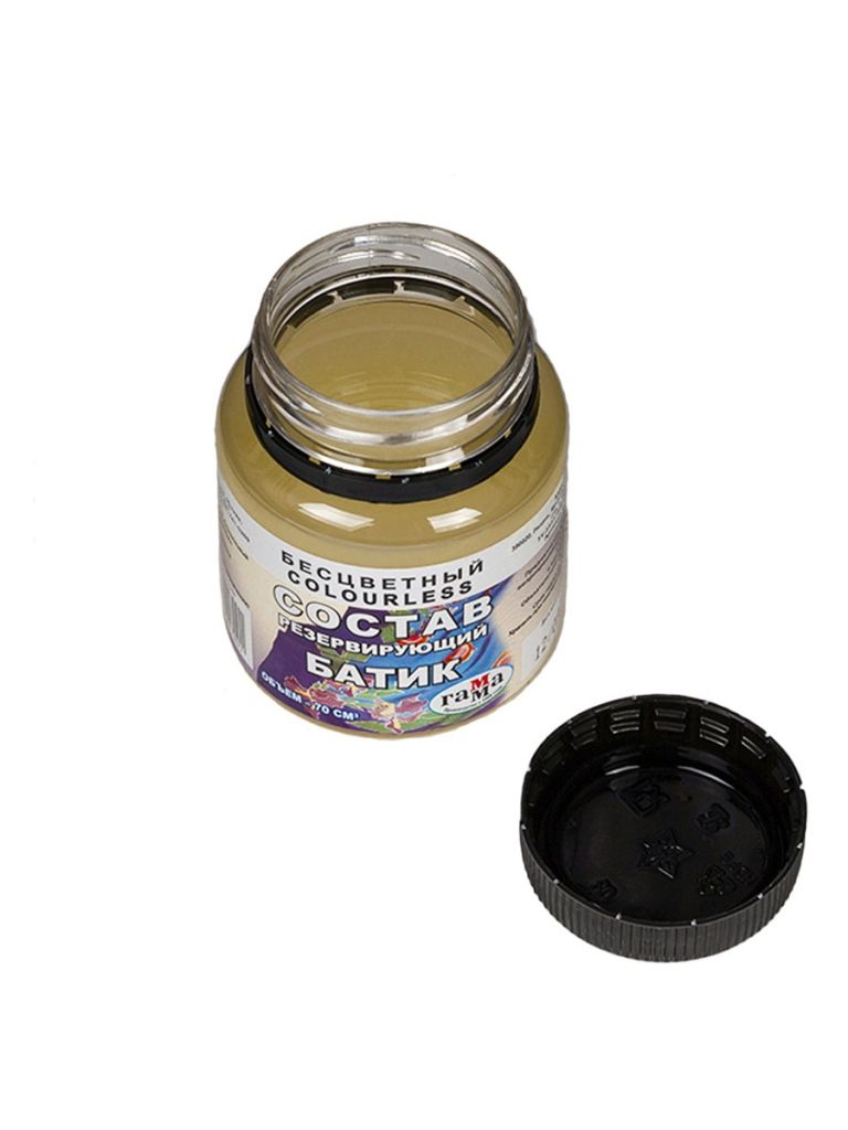 Резервирующий состав лежит в основе технологии батика. Его назначение - препятствовать проникновению краски в ткань. Различные техники батика различаются преимущественно тем, какой вид резерва они используют. Резерв производства компании Гамма основан на специальном клеящем составе, препятствующем перетеканию краски за пределы обозначенного контура. Он отлично сочетается с большинством красок для шелка и устойчив к воздействию воды, стирке и химической чистке. резервирующие составы разных цветов в банках по 75 мл.