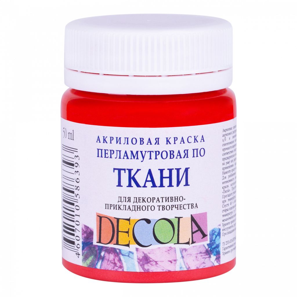 Акрил по ткани «Decola» («Дек?ла») производится заводом художественных красок Невская палитра, расположенным в городе Санкт-Петербурге. Завод уже более 80 лет выпускает продукцию для профессиональных художников и любителей творчества. Акрил по ткани «Декола» предназначен для росписи хлопчатобумажных, шелковых и синтетических тканей. Краска наносится непосредственно на ткань кистью, штемпелем или через трафарет. Готовый рисунок закрепляется горячим утюгом с внутренней стороны. Краска светостойкая, быстро сохнет и не линяет. Для разбавления акрила и получения акварельного эффекта необходимо использовать разбавитель для акриловых красок по ткани «Decola». Акрил по ткани «Декола» представлен широкой палитрой, в которой, помимо основных цветов, есть флуоресцентные, перламутровые и цвета металлики. Все цвета выпускаются в баночках по 50 миллилитров и в различных наборах.