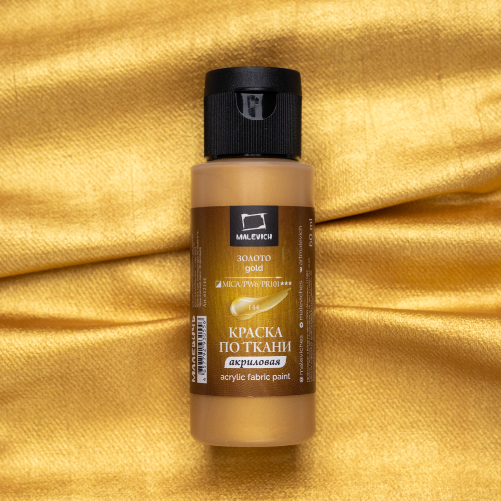 Акриловые краски на водной основе «Малевичъ» для росписи одежды и тканей различной плотности, а также натуральной и искусственной кожи. Краски светостойкие, отлично смешиваются, легко наносятся и быстро высыхают. Способ применения: нанесите рисунок на чистый материал, через 3-4 часа прогладьте место размещения рисунка с изнаночной стороны утюгом без пара при средней температуре. Рисунок на материале, который невозможно прогладить с изнаночной стороны, например, обувь, нужно обработать феном с лицевой стороны.