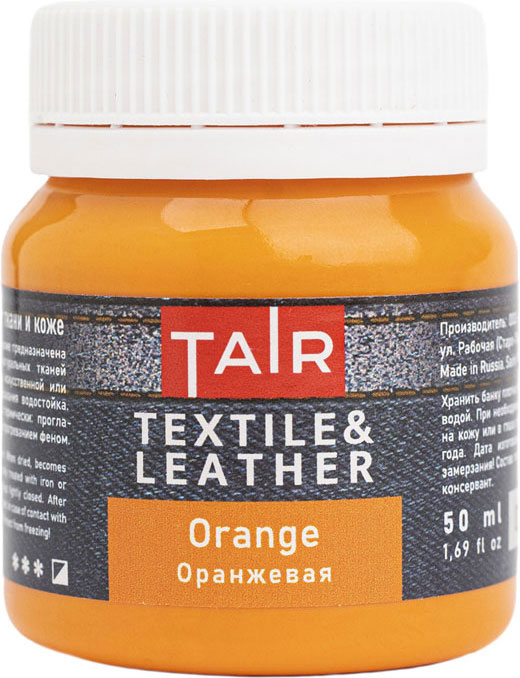 Акриловые краски, предназначенные для украшения натуральных тканей, таких как хлопок или лён, а также изделий из натуральной или искусственной кожи. Акриловые краски для росписи ткани и кожи прекрасно подходят для создания фрагментарных рисунков. Отлично держатся на поверхности кожи и текстиля, позволяют создавать уникальные изображения благодаря разнообразной цветовой палитре. Удобны в применении. Не используются для полного окрашивания тканей. Консистенция: густая, кремообразная. Укрывистость: в зависимости от пигмента. Состав: акриловая дисперсия, пигменты, наполнитель, загуститель, консерванты, вода. Свойства: ·Создают гибкое покрытие; ·Разбавляется водой, акриловым лаком, разбавителем акриловых красок по ткани и т.п.; ·После высыхания приобретает водостойкость; ·Высокий уровень светостойкости (в зависимости от пигмента); ·Смешиваются между собой в любых соотношениях; ·Время высыхания в течение одного часа; ·Мягкая однородная консистенция. Способ применения: Предварительно очистить и обезжирить основу. Некоторые пропитки, которые наносятся на кожу и кожзаменители могут мешать сцеплению краски с поверхностью. Ткань лучше предварительно прогладить. Краска наносится кисть, валиком или поролоновым спонжем. Предпочтительно наносить несколько тонких, полупрозрачных слоев, чем один толстый. Красочный слой приобретёт особую прочность только после воздействия температуры. После завершения работы необходимо выждать 12-15 часов, после — закрепить рисунок, проглаживая горячим утюгом с изнаночной стороны в течение 2-3 минут или обработав его потоком горячего воздуха из бытового фена. Однако на тканях из натуральных волокон краска будет прочно держаться и без закрепления. Стоит помнить, что данные краски не предназначены для полного окрашивания ткани, а только для нанесения фрагментарных изображений. Подходящие поверхности: Изделия из кожи, кожзама, натуральных и некоторых искусственных тканей. Будьте внимательны, некоторые изделия из искусственной кожи бывают обработаны на производстве составами, входящими в конфликт с красками по ткани и коже (плохая сцепляемость, липкий финиш после высыхания). Рекомендуется предварительная проверка совместимости на небольшом участке. Расход: 100 мл на 1-1,5 м2 в зависимости от толщины слоя. Хранение: рекомендуется хранение при температуре +2°C ? +36°C.