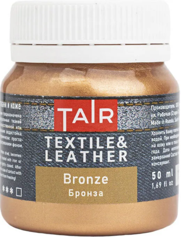 Акриловые краски, предназначенные для украшения натуральных тканей, таких как хлопок или лён, а также изделий из натуральной или искусственной кожи. Акриловые краски для росписи ткани и кожи прекрасно подходят для создания фрагментарных рисунков. Отлично держатся на поверхности кожи и текстиля, позволяют создавать уникальные изображения благодаря разнообразной цветовой палитре. Удобны в применении. Не используются для полного окрашивания тканей. Консистенция: густая, кремообразная. Укрывистость: в зависимости от пигмента. Состав: акриловая дисперсия, пигменты, наполнитель, загуститель, консерванты, вода. Свойства: ·Создают гибкое покрытие; ·Разбавляется водой, акриловым лаком, разбавителем акриловых красок по ткани и т.п.; ·После высыхания приобретает водостойкость; ·Высокий уровень светостойкости (в зависимости от пигмента); ·Смешиваются между собой в любых соотношениях; ·Время высыхания в течение одного часа; ·Мягкая однородная консистенция. Способ применения: Предварительно очистить и обезжирить основу. Некоторые пропитки, которые наносятся на кожу и кожзаменители могут мешать сцеплению краски с поверхностью. Ткань лучше предварительно прогладить. Краска наносится кисть, валиком или поролоновым спонжем. Предпочтительно наносить несколько тонких, полупрозрачных слоев, чем один толстый. Красочный слой приобретёт особую прочность только после воздействия температуры. После завершения работы необходимо выждать 12-15 часов, после — закрепить рисунок, проглаживая горячим утюгом с изнаночной стороны в течение 2-3 минут или обработав его потоком горячего воздуха из бытового фена. Однако на тканях из натуральных волокон краска будет прочно держаться и без закрепления. Стоит помнить, что данные краски не предназначены для полного окрашивания ткани, а только для нанесения фрагментарных изображений. Подходящие поверхности: Изделия из кожи, кожзама, натуральных и некоторых искусственных тканей. Будьте внимательны, некоторые изделия из искусственной кожи бывают обработаны на производстве составами, входящими в конфликт с красками по ткани и коже (плохая сцепляемость, липкий финиш после высыхания). Рекомендуется предварительная проверка совместимости на небольшом участке. Расход: 100 мл на 1-1,5 м2 в зависимости от толщины слоя. Хранение: рекомендуется хранение при температуре +2°C ? +36°C.