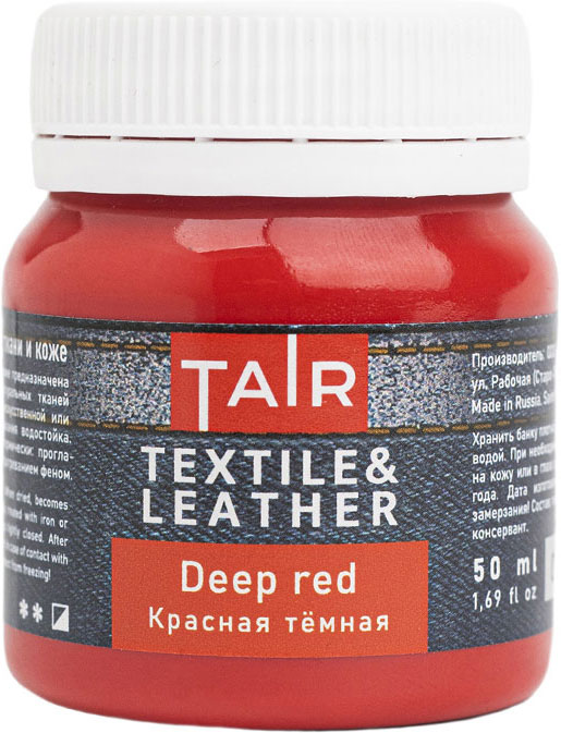 Акриловые краски, предназначенные для украшения натуральных тканей, таких как хлопок или лён, а также изделий из натуральной или искусственной кожи. Акриловые краски для росписи ткани и кожи прекрасно подходят для создания фрагментарных рисунков. Отлично держатся на поверхности кожи и текстиля, позволяют создавать уникальные изображения благодаря разнообразной цветовой палитре. Удобны в применении. Не используются для полного окрашивания тканей. Консистенция: густая, кремообразная. Укрывистость: в зависимости от пигмента. Состав: акриловая дисперсия, пигменты, наполнитель, загуститель, консерванты, вода. Свойства: ·Создают гибкое покрытие; ·Разбавляется водой, акриловым лаком, разбавителем акриловых красок по ткани и т.п.; ·После высыхания приобретает водостойкость; ·Высокий уровень светостойкости (в зависимости от пигмента); ·Смешиваются между собой в любых соотношениях; ·Время высыхания в течение одного часа; ·Мягкая однородная консистенция. Способ применения: Предварительно очистить и обезжирить основу. Некоторые пропитки, которые наносятся на кожу и кожзаменители могут мешать сцеплению краски с поверхностью. Ткань лучше предварительно прогладить. Краска наносится кисть, валиком или поролоновым спонжем. Предпочтительно наносить несколько тонких, полупрозрачных слоев, чем один толстый. Красочный слой приобретёт особую прочность только после воздействия температуры. После завершения работы необходимо выждать 12-15 часов, после — закрепить рисунок, проглаживая горячим утюгом с изнаночной стороны в течение 2-3 минут или обработав его потоком горячего воздуха из бытового фена. Однако на тканях из натуральных волокон краска будет прочно держаться и без закрепления. Стоит помнить, что данные краски не предназначены для полного окрашивания ткани, а только для нанесения фрагментарных изображений. Подходящие поверхности: Изделия из кожи, кожзама, натуральных и некоторых искусственных тканей. Будьте внимательны, некоторые изделия из искусственной кожи бывают обработаны на производстве составами, входящими в конфликт с красками по ткани и коже (плохая сцепляемость, липкий финиш после высыхания). Рекомендуется предварительная проверка совместимости на небольшом участке. Расход: 100 мл на 1-1,5 м2 в зависимости от толщины слоя. Хранение: рекомендуется хранение при температуре +2°C ? +36°C.