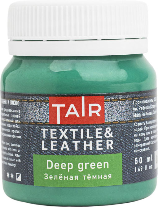Акриловые краски, предназначенные для украшения натуральных тканей, таких как хлопок или лён, а также изделий из натуральной или искусственной кожи. Акриловые краски для росписи ткани и кожи прекрасно подходят для создания фрагментарных рисунков. Отлично держатся на поверхности кожи и текстиля, позволяют создавать уникальные изображения благодаря разнообразной цветовой палитре. Удобны в применении. Не используются для полного окрашивания тканей. Консистенция: густая, кремообразная. Укрывистость: в зависимости от пигмента. Состав: акриловая дисперсия, пигменты, наполнитель, загуститель, консерванты, вода. Свойства: ·Создают гибкое покрытие; ·Разбавляется водой, акриловым лаком, разбавителем акриловых красок по ткани и т.п.; ·После высыхания приобретает водостойкость; ·Высокий уровень светостойкости (в зависимости от пигмента); ·Смешиваются между собой в любых соотношениях; ·Время высыхания в течение одного часа; ·Мягкая однородная консистенция. Способ применения: Предварительно очистить и обезжирить основу. Некоторые пропитки, которые наносятся на кожу и кожзаменители могут мешать сцеплению краски с поверхностью. Ткань лучше предварительно прогладить. Краска наносится кисть, валиком или поролоновым спонжем. Предпочтительно наносить несколько тонких, полупрозрачных слоев, чем один толстый. Красочный слой приобретёт особую прочность только после воздействия температуры. После завершения работы необходимо выждать 12-15 часов, после — закрепить рисунок, проглаживая горячим утюгом с изнаночной стороны в течение 2-3 минут или обработав его потоком горячего воздуха из бытового фена. Однако на тканях из натуральных волокон краска будет прочно держаться и без закрепления. Стоит помнить, что данные краски не предназначены для полного окрашивания ткани, а только для нанесения фрагментарных изображений. Подходящие поверхности: Изделия из кожи, кожзама, натуральных и некоторых искусственных тканей. Будьте внимательны, некоторые изделия из искусственной кожи бывают обработаны на производстве составами, входящими в конфликт с красками по ткани и коже (плохая сцепляемость, липкий финиш после высыхания). Рекомендуется предварительная проверка совместимости на небольшом участке. Расход: 100 мл на 1-1,5 м2 в зависимости от толщины слоя. Хранение: рекомендуется хранение при температуре +2°C ? +36°C.