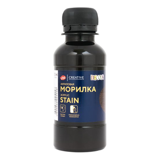 Акриловые морилки предназначены для тонировки древесины в декоративном творчестве. Акриловые морилки представляет собой тонкодисперсную суспензию органических и неорганических пигментов в водной акриловой дисперсии с добавлением консерванта. Наносятся на зашкуренную и обеспыленную поверхность валиком, тампоном, спонжем, кистью или распылителем в один или несколько слоев до достижения требуемой интенсивности цвета. Хранить при температуре не ниже 5 градусов. Состав: акриловая дисперсия, вода, пигмент, добавки, биоцид (содержит консерват (2-Феноксиэтанол, 1,2-Пропанэдиол, 3-(2-этил-гексилокси). Может вызвать аллергические реакции.
