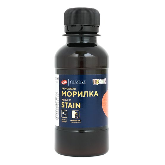 Акриловые морилки предназначены для тонировки древесины в декоративном творчестве. Акриловые морилки представляет собой тонкодисперсную суспензию органических и неорганических пигментов в водной акриловой дисперсии с добавлением консерванта. Наносятся на зашкуренную и обеспыленную поверхность валиком, тампоном, спонжем, кистью или распылителем в один или несколько слоев до достижения требуемой интенсивности цвета. Хранить при температуре не ниже 5 градусов. Состав: акриловая дисперсия, вода, пигмент, добавки, биоцид (содержит консерват (2-Феноксиэтанол, 1,2-Пропанэдиол, 3-(2-этил-гексилокси). Может вызвать аллергические реакции.