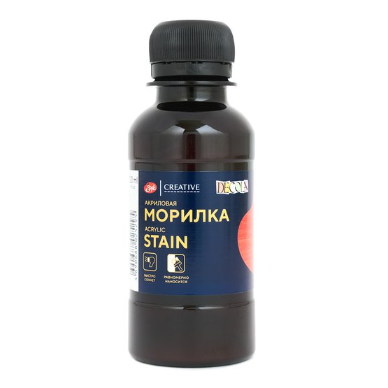 Акриловые морилки предназначены для тонировки древесины в декоративном творчестве. Акриловые морилки представляет собой тонкодисперсную суспензию органических и неорганических пигментов в водной акриловой дисперсии с добавлением консерванта. Наносятся на зашкуренную и обеспыленную поверхность валиком, тампоном, спонжем, кистью или распылителем в один или несколько слоев до достижения требуемой интенсивности цвета. Хранить при температуре не ниже 5 градусов. Состав: акриловая дисперсия, вода, пигмент, добавки, биоцид (содержит консерват (2-Феноксиэтанол, 1,2-Пропанэдиол, 3-(2-этил-гексилокси). Может вызвать аллергические реакции.