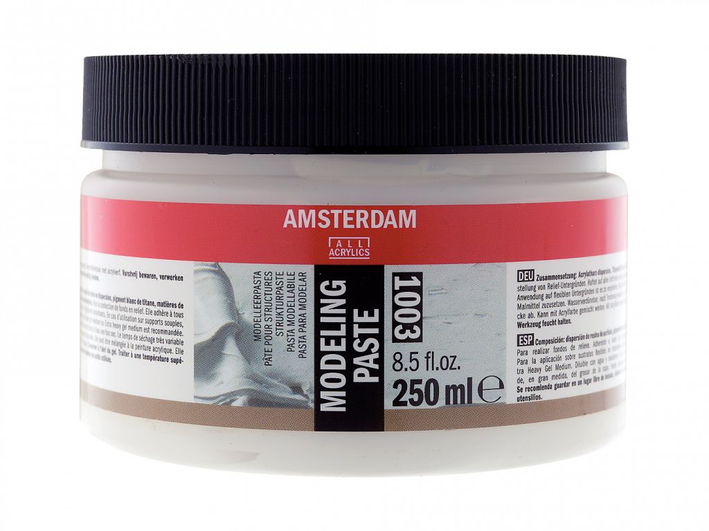 Паста моделирующая акриловая Talens Amsterdam №1003. Применяется для акриловых и масляных красок. Увеличивает пастозность красок, делает их плотнее и тяжелее, а нанесенный мазок толще и объемнее. Позволяет создавать довольно объемные рельефные слои и необычные эффекты масляной или акриловой краской. Высыхает через несколько часов в зависимости от использованного количества. Образует прочную водоустойчивую поверхность. Объем: 250 мл.