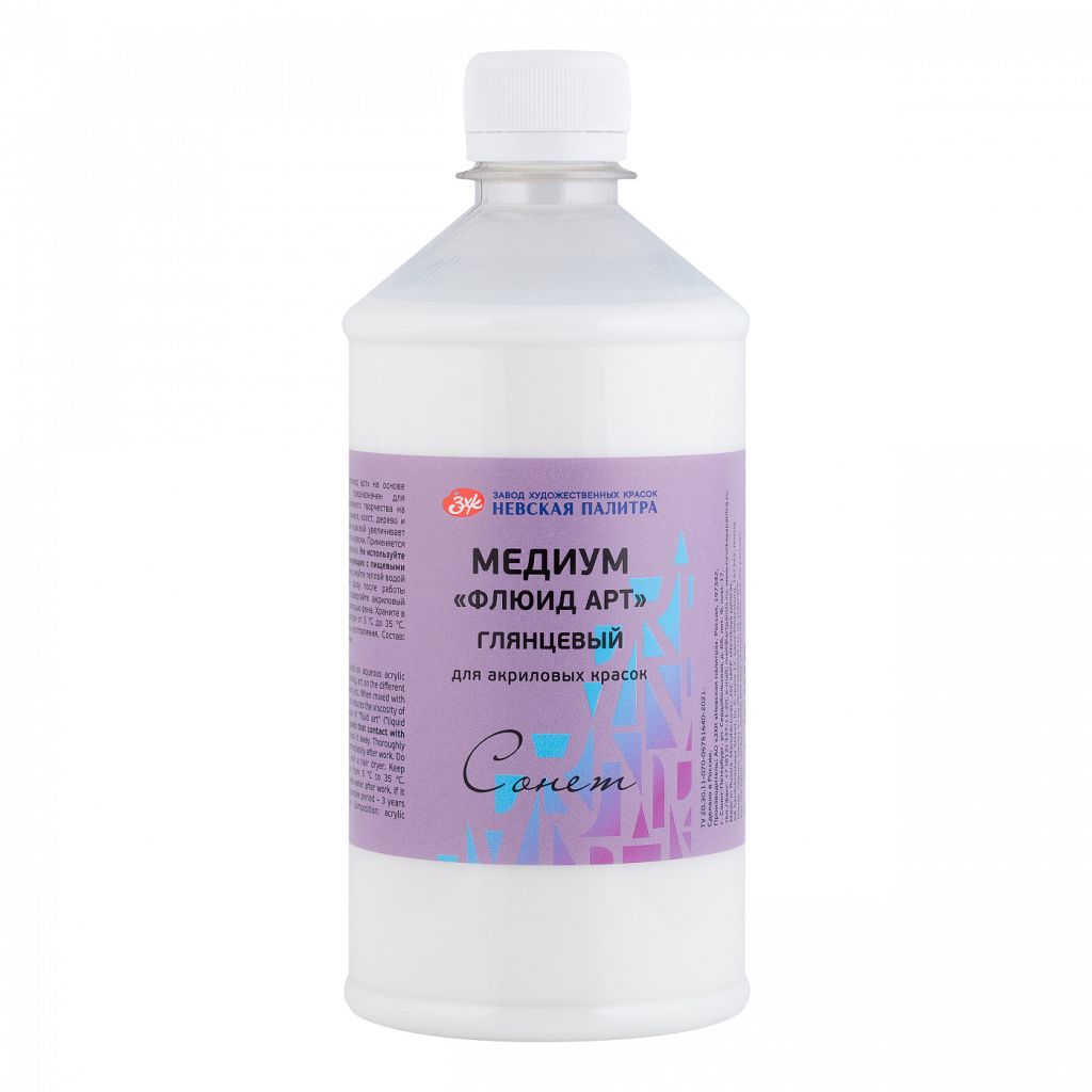Медиум акриловый глянцевый «Флюид арт» на основе водной акриловой дисперсии предназначен для художественных работ и декоративного творчества на различных материалах, таких как бумага, холст, дерево и т.д. При смешивании с акриловой краской увеличивает уровень глянца и уменьшает вязкость краски. Применяется в технике «флюид арт» («жидкий акрил»).