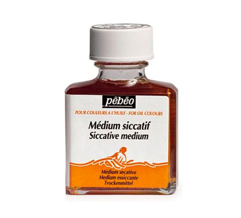 Сиккатив Pebeo. Ускоряет образование красочной пленки, увеличивает ее устойчивость, сопротивление внешним воздействиям. Ускоряет высыхание внутренних слоев. Имеет бледный желтый оттенок. Объем: 75 мл.