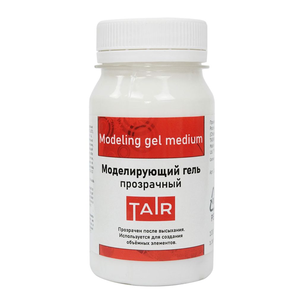 Гель-паста моделирующая Таир. Глянцевый прозрачный гель. Используется для создания рельефных поверхностей или объемных рисунков на любой основе, на которую ложатся акриловые краски. Легко колеруется акриловыми красками. Объем: 100 мл.