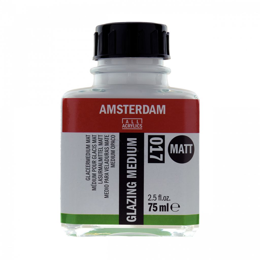 Медиум Amsterdam (017) уменьшает степень блеска и увеличивает текучесть и прозрачность акриловых красок. Состав: дисперсия акриловых смол, матирующий агент. Для оптимального эффекта следует смешивать медиум с прозрачными красками. Хорошо встряхивать перед применением. Медиум молочного цвета, после высыхания прозрачный и бесцветный. Немного ускоряет высыхание акриловых красок. Можно разбавлять водой. Уменьшает глянцевый блеск красок. После высыхания водостойкий. Применять при температуре не ниже +10 (по Цельсию). Не замораживать.