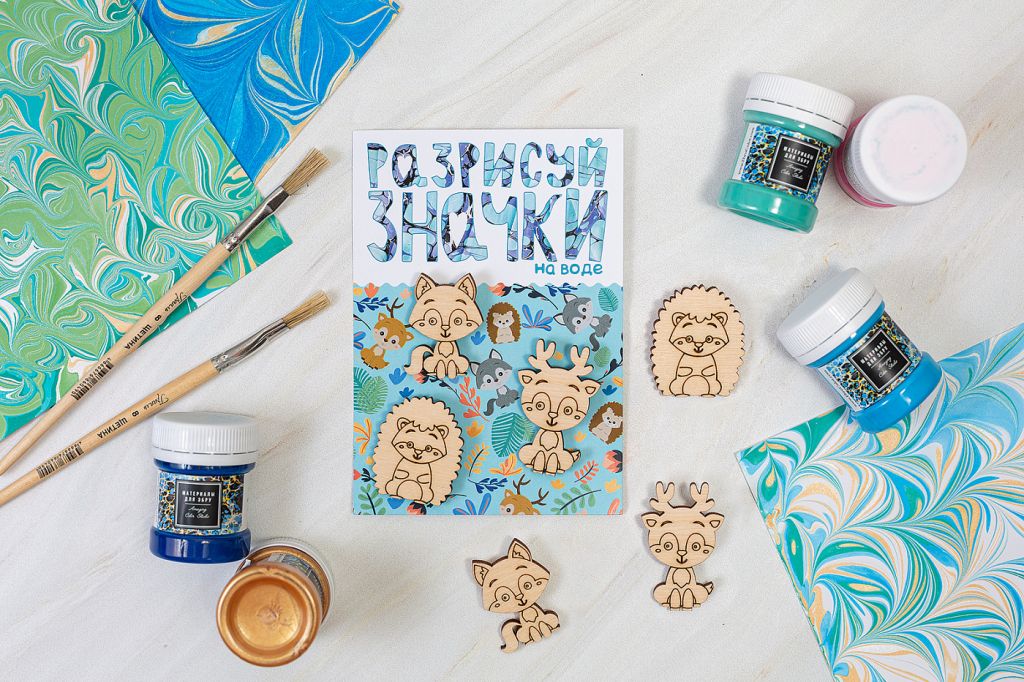 Эбру - техника рисования на волшебной воде специальными красками, создавая рисунок на водной глади его в пару мгновений можно переносить на различные поверхности. Волшебства будет ещё больше, если перенести Эбру-рисунок не только на бумагу, но ещё и на дерево! Набор #2 состоит из трёх деревянных значков: Ёжик, Волк, Оленёнок + в подарок на оборотной стороне набора вы найдёте видеоурок «разрисуй значки на воде». Краска в комплект набора не входит.
