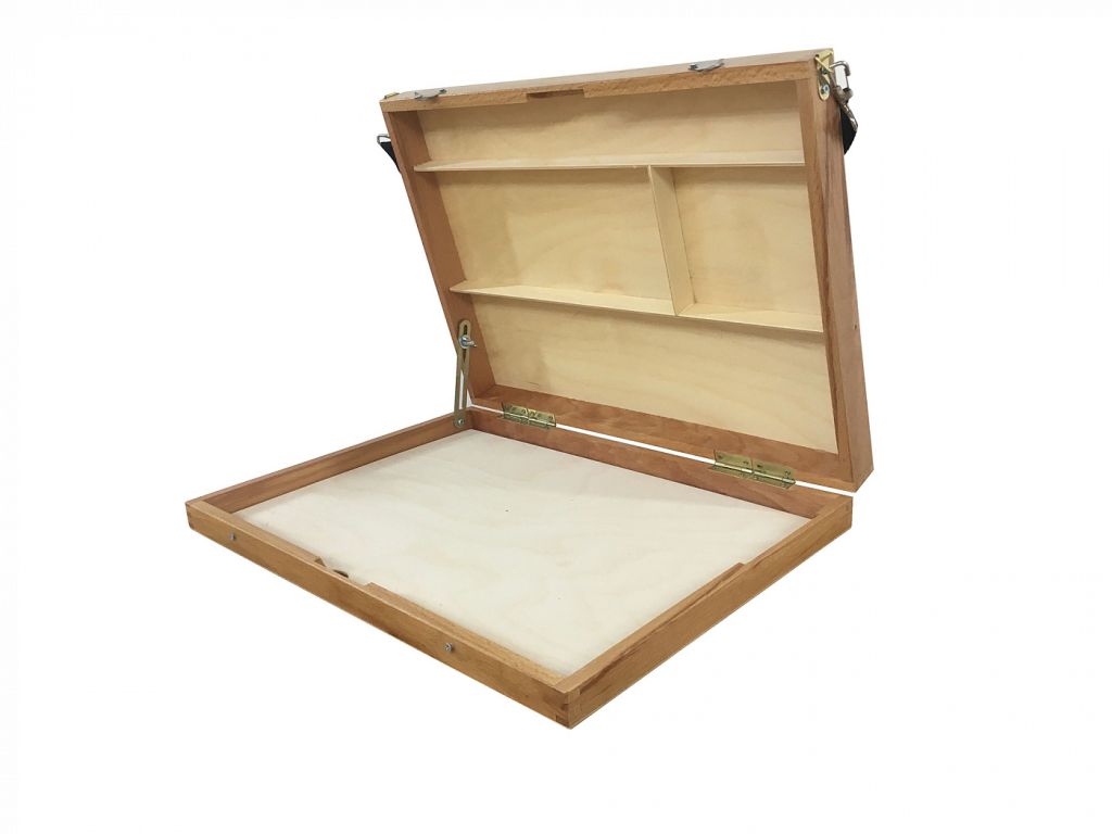 О этюднике: этюдник совмещает в себе свойства мольберта и ящика для красок. На крышке этюдника можно удобно расположить планшет или холст, а в ящике разместить все необходимое для работы: краски, кисти и другие инструменты. В сложенном виде этюдник занимает мало места и удобен в транспортировке. Характеристика: этюдник изготовлен из износостойкой промасленной древесины. Ящик этюдника разделён перегородками на ячейки, в которых удобно хранить художественные принадлежности. Данная модель не оборудована ножками и предназначена для использования дома на столе или для размещения на коленях. В комплектацию входит палитра из фанеры и наплечный ремень. Вес этюдника - 1,66 кг. Использование: этюдник совмещает в себе свойства мольберта и ящика для хранения красок. Данная модель не оборудована ножками и предназначена для использования дома (в студии) на столе или для размещения на коленях. Производство: производится Подольским-АРТ Центром, который является правопреемником Подольского Производственного Комбината Художественного Фонда СССР, образованного в 1958 году. За время работы продукция «Подольской фабрики» приобрела известность не только на территории России, но и за рубежом.