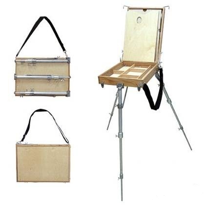 О этюднике: этюдник совмещает в себе свойства мольберта и ящика для красок. На крышке этюдника можно удобно расположить планшет или холст, а в ящике разместить все необходимое для работы: краски, кисти и другие инструменты. В сложенном виде этюдник занимает мало места и удобен в транспортировке. Этюдник обработан морилкой. Размер этюдника 28 х 40 см. Характеристика: этюдник изготовлен из износостойкой промасленной древесины. Он оснащён выдвижными телескопическими ножками, при помощи которых можно регулировать высоту и положение этюдного ящика. Положение ножек фиксируется завинчиванием болта типа «барашек». Ящик этюдника разделён перегородками на ячейки, в которых удобно хранить художественные принадлежности. В комплектацию входит прямоугольная палитра из фанеры и фанерный планшет, на котором можно закрепить бумагу для работы. Использование: предназначен для использования на выездных работах на природе (на пленэрах), но также может быть использован в мастерской или дома. Этюдник совмещает в себе свойства мольберта и ящика для красок. Производство: производится Подольским-АРТ Центром, который является правопреемником Подольского Производственного Комбината Художественного Фонда СССР, образованного в 1958 году. За время работы продукция «Подольской фабрики» приобрела известность не только на территории России, но и за рубежом.