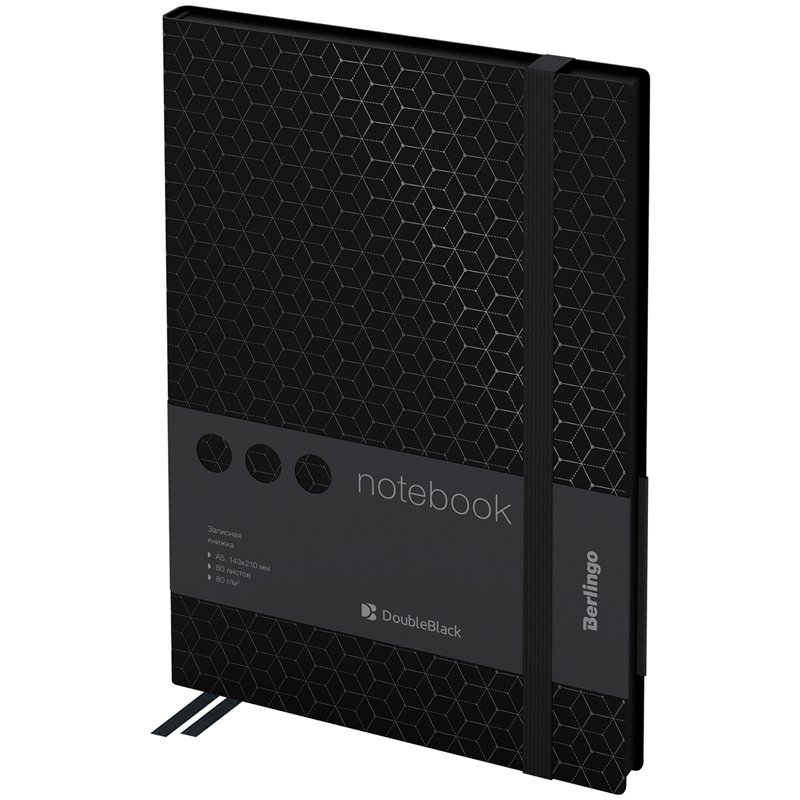 Стильные записные книжки Berlingo DoubleBlack с полужесткой обложкой из высококачественного soft-touch кожзаменителя с черным срезом. Вертикальная фиксирующая резинка увеличенной толщины 9мм. Цвет обложки - черный. Имиджевый рисунок лаком по всей площади обложки. Внутренний карман для хранения заметок и мелочей. Внутренний блок из 80 листов высокачественной кремовой бумаги повышенной плотности 80 г/м. Перфорированные уголки блока. 2 закладки-ляссе. Прошитый блок. Подходит под персонализацию.
