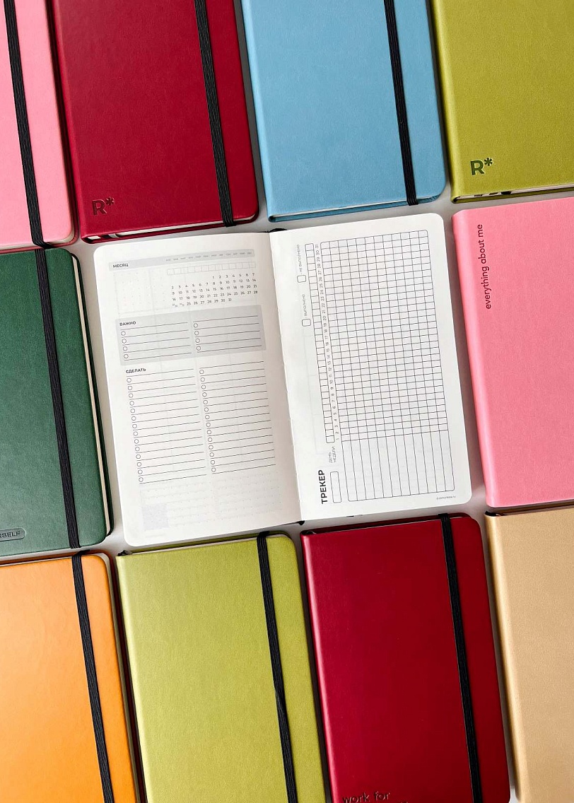 Жизнь в балансе между работой и личными делами возможна. Особенно если вы используете такой функциональный и продуманный инструмент как еженедельник. Именно он позволяет видеть все дела, как на ладони, балансировать в задачах и находить время на самое важное. Что внутри? Список желаний, планы на год, колесо баланса списки книг, фильмов и интересных мест, планирование месяцев в расширенном формате с трекером привычек и планирование недель. Кстати, о недельных разворотах. Remarklee выбрали один из самых удобных форматов, когда вы сами решаете в каком порядке располагать дни недели. Этот еженедельник способен стать вашим незаменимым помощником в планировании и другом в выражении мыслей. А его стильное и качественное исполнение не оставит равнодушным никого! Еженедельник выполнен из бумаги цвета слоновой кости плотностью 140 гр/м2 в обложке из переплётного картона и приятной на ощупь гладкой эко-кожи. Наполнение: Кому принадлежит - стр. 1; Список желаний - стр. 2-3; План на год - стр. 4-7; Колесо баланса - стр. 8-10; Где побывать - стр. 11; Что почитать - стр. 12-13; Что посмотреть - стр. 14-15; Планирование месяца - стр. 16-63; Планирование недели - стр. 64-171; Итоги года - стр. 172-173; Страницы в точку - стр. 174-224.