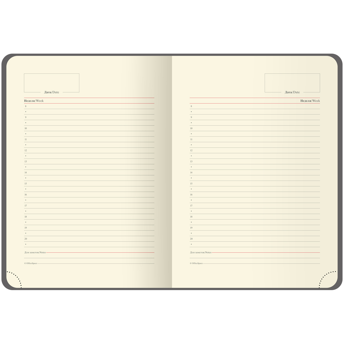 Стильный недатированный ежедневник OfficeSpace формата А5 серии Duo в твёрдой обложке, выполненной из высококачественного кожзаменителя двух цветов. Внутренний блок состоит из 136 листов офсетной бумаги плотностью 70 г/м2 и печатью в 2 краски. Ежедневник представлен в размере 145*205 мм. Перфорированные уголки и закладка-ляссе обеспечат комфорт и удобство при использовании ежедневника. Внутри есть полезный справочный материал.