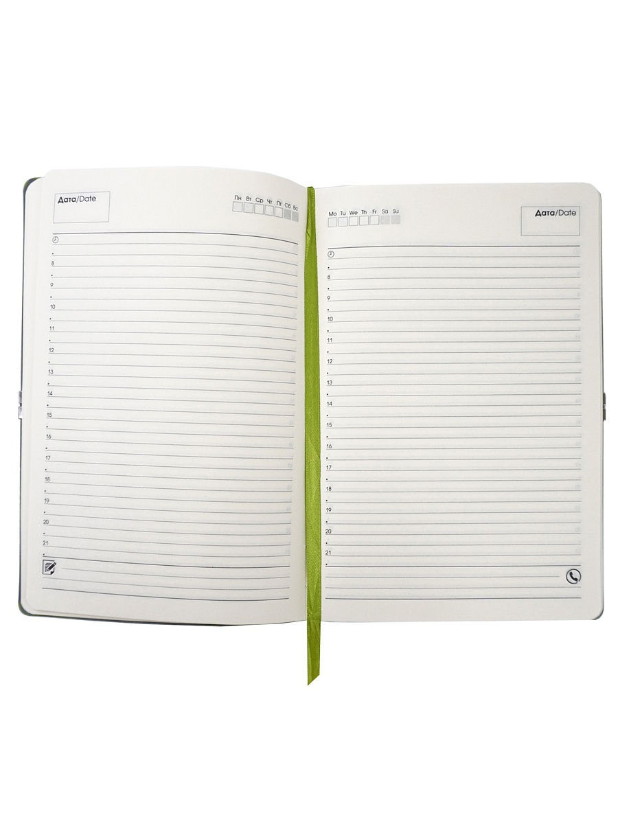 Классический современный ежедневник. Мягкая обложка из экокожи с имитацией фактуры ткани, стильная фурнитура, поперечная круглая резинка и тонированная бумага внутреннего блока. Обложки представлены в 10 оттенках, которые понравятся широкому кругу потребителей. Выпускается в формате А5.
