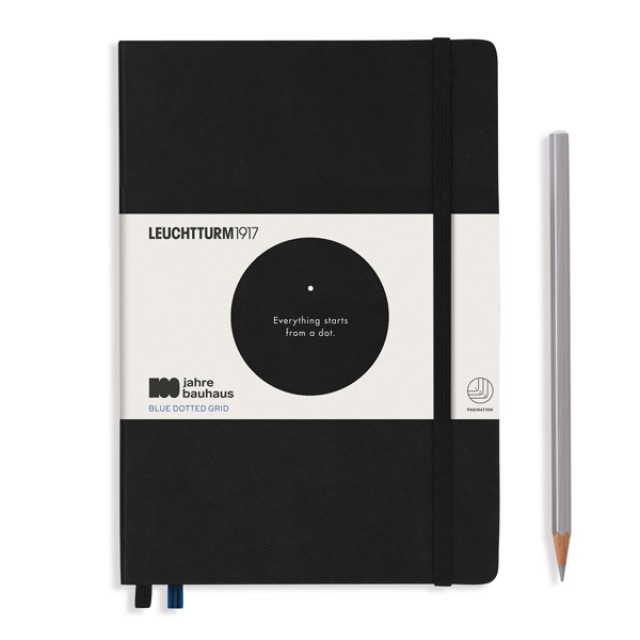 Записные книжки Leuchtturm — ваш помощник на каждый день. Внутри блок из высококачественной писчей бумаги плотностью 80 гр/м2. Гладкая бумага оптимальной плотности подходит для письма любыми видами ручек. Твердая обложка, резинка фиксатор, закладка ляссе и кармашек на задней части обложки — неизменные атрибуты записных книжек и блокнотов немецкого бренда Leuchtturm. Лимитированная коллекция записных книжек, петель для ручек и карандашей Leuchtturm1917 Bauhaus в честь100-летнего юбилея BAUHAUS SCHOOL, немецкой школы дизайна (1919-1933), которая стала символом компактного, функционального и умелого немецкого дизайна и производства. Блокнот Баухауса имеет страницы с точками и представляет собой книгу среднего размера (A5). - Цвета: черный - 233 пронумерованных страниц - Карман - Пустое оглавление и пронумерованные страницы - Эластичная резинка-фиксатор - Чернильная бумага 80 гр/м2 - Наклейка для этикетирования и архивирования - Размеры: 145х210 мм.