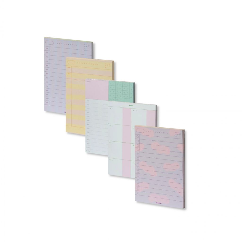Настольные планировщики от бренда FALAFEL BOOKS формата А5 — это удобный вариант для офиса и дома. Планировщики представляют собой компактные блокноты с различной линовкой, вы можете выбрать наиболее удобный вариант для различных задач — в точку, с линовкой To-do Pad для текущих задач и списков, с линовкой по дням недели или по часам. Листы планировщика легко и аккуратно удаляются благодаря специальному клеевому креплению на корешке.