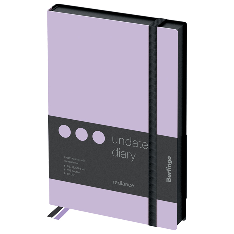 Стильный недатированный ежедневник Berlingo Instinct формата B6 с ярким цветным контрастным срезом и ультрамягкой обложкой из высококачественной экокожи. Нежный лавандовый цвет обложки создаёт эффектный контраст с чёрным цветом среза. Внутренний блок состоит из 136 листов высококачественной кремовой бумаги повышенной плотности 80 г/м? с пантонной печатью в 2 краски. Недатированный ежедневник Berlingo Instinct представлен в размере 122 на 183 мм. Перфорированные уголки, справочная информация и закладка-ляссе сделают использование ежедневника Berlingo Instinct комфортным. Внутри располагаются отрывные заметки и бланки извещения о ДТП, справочные материалы. Недатированный ежедневник Berlingo подходит под персонализацию, 3 комплекта стикеров станут приятным дополнением.