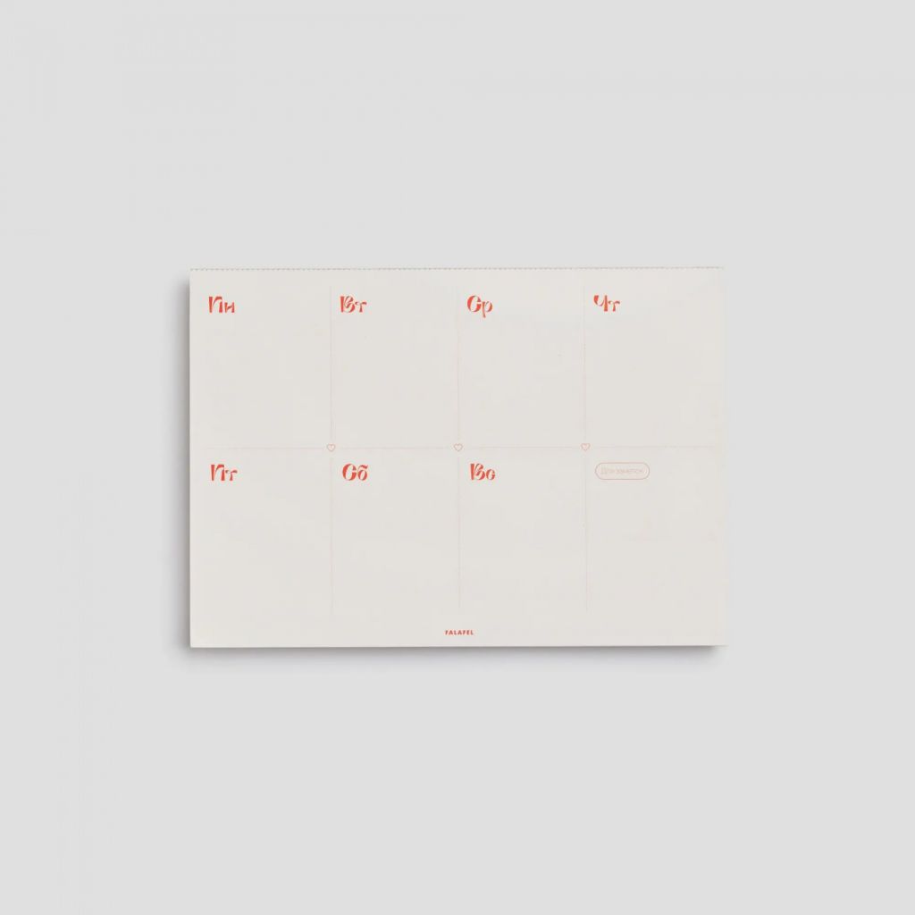 Настольные планировщики от бренда FALAFEL BOOKS формата А4 — это удобный вариант для офиса и дома. Планировщики представляют собой компактные блокноты с различной линовкой, вы можете выбрать наиболее удобный вариант для различных задач — в точку, с линовкой To-do Pad для текущих задач и списков, с линовкой по дням недели или по часам. Листы планировщика легко и аккуратно удаляются благодаря специальному клеевому креплению на корешке.