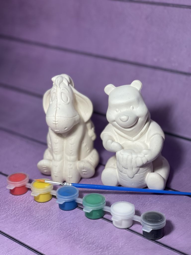 Набор для творчества, 3D фигурки из гипса для раскрашивания Винни и Ушастик - 2 фигурки, краски и кисть. В набор входит 2 фигурки: Винни и Ушастик высотой по 11 см, набор красок и кисть. Раскрашивание фигурок - отличный способ провести время с интересом и пользой. Это прекрасный вариант для развития моторики, мышления и фантазии, изучения форм и цветов. Фигурки прочные и детализированные. Гипс - экологичный материал. Данный набор подойдет для любого возраста!