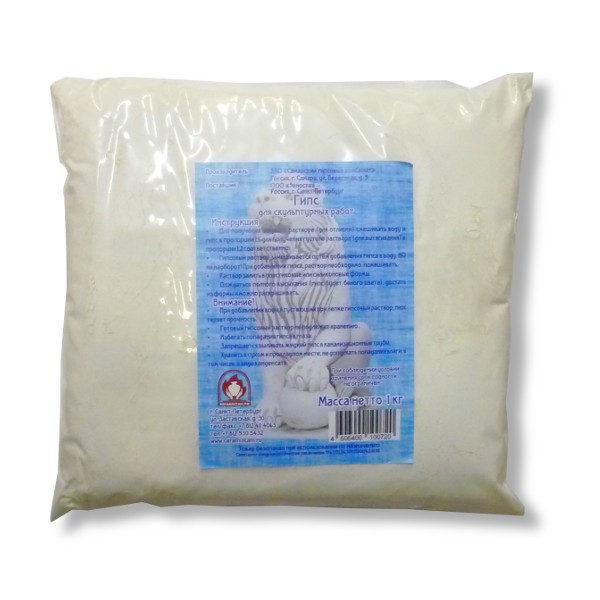 Гипс скульптурный. Масса: 1 кг. Прочность ГВВС-16. Цвет: белый. Используется для изготовления скульптурных моделей, эскизов и форм, декоративных изделий. Время схватывания 5-10 минут, после это с массой можно работать. Время полного высыхания до 14 суток при комнатной температуре. Изделие можно красить практически всем.